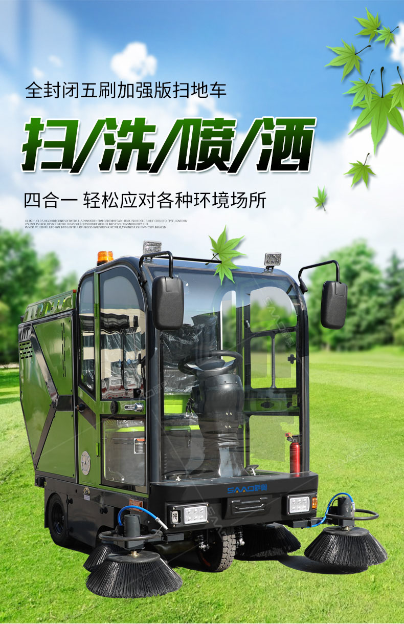 全封閉五刷掃地車綠