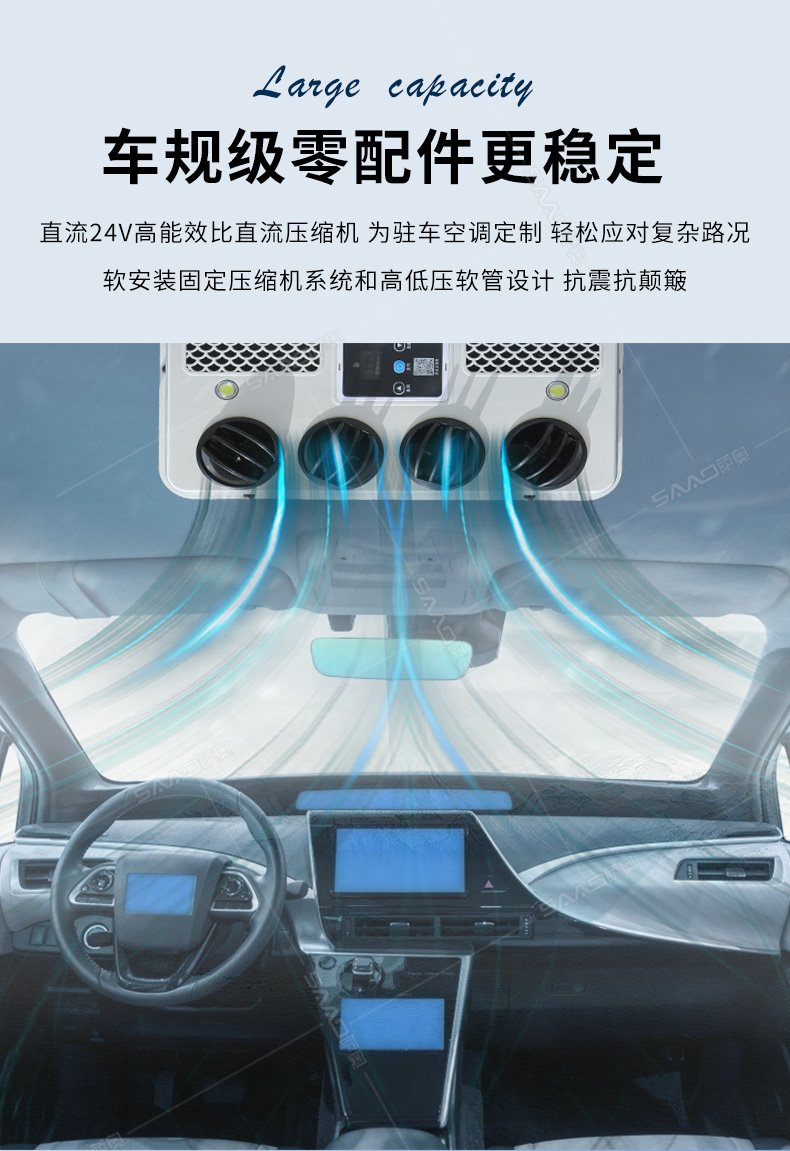 SA-D8000車載頂置駐車空調主要用于卡車、貨車等大車的制冷。一分鐘快速制冷高效節能,白天可用4-6小時晚上6-8小時。