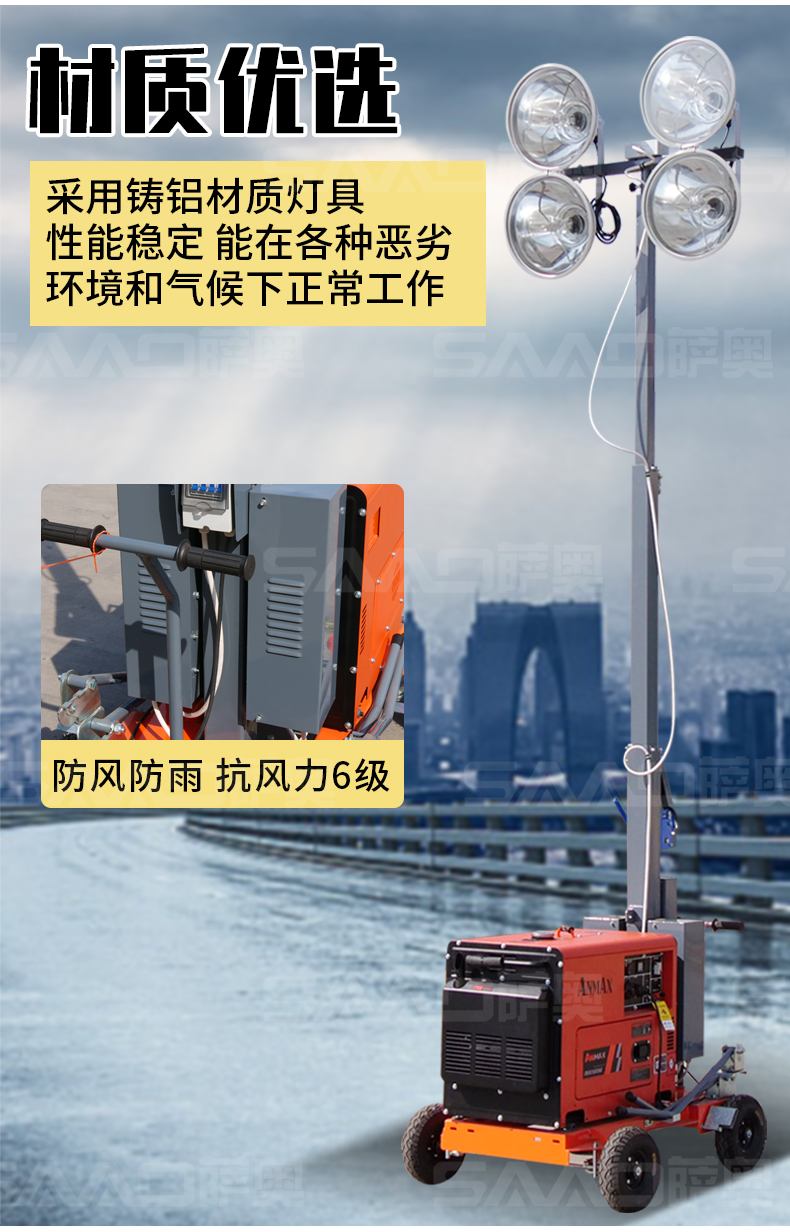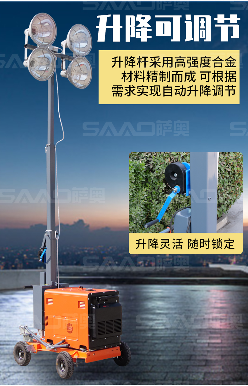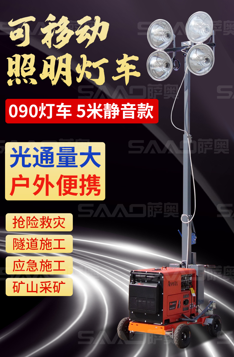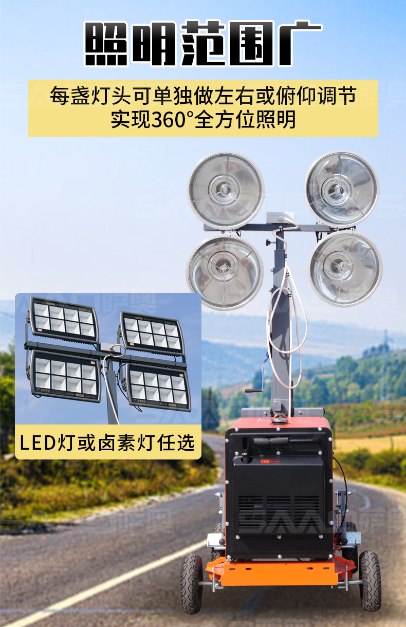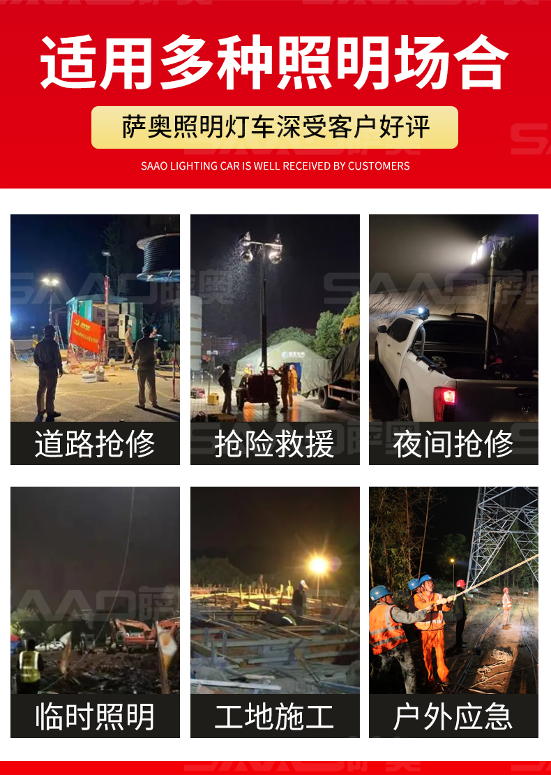 用于體育場館、機場、碼頭等大型公共場所,公路、鐵路、電力等緊急搶險現場,露天采礦現場等。