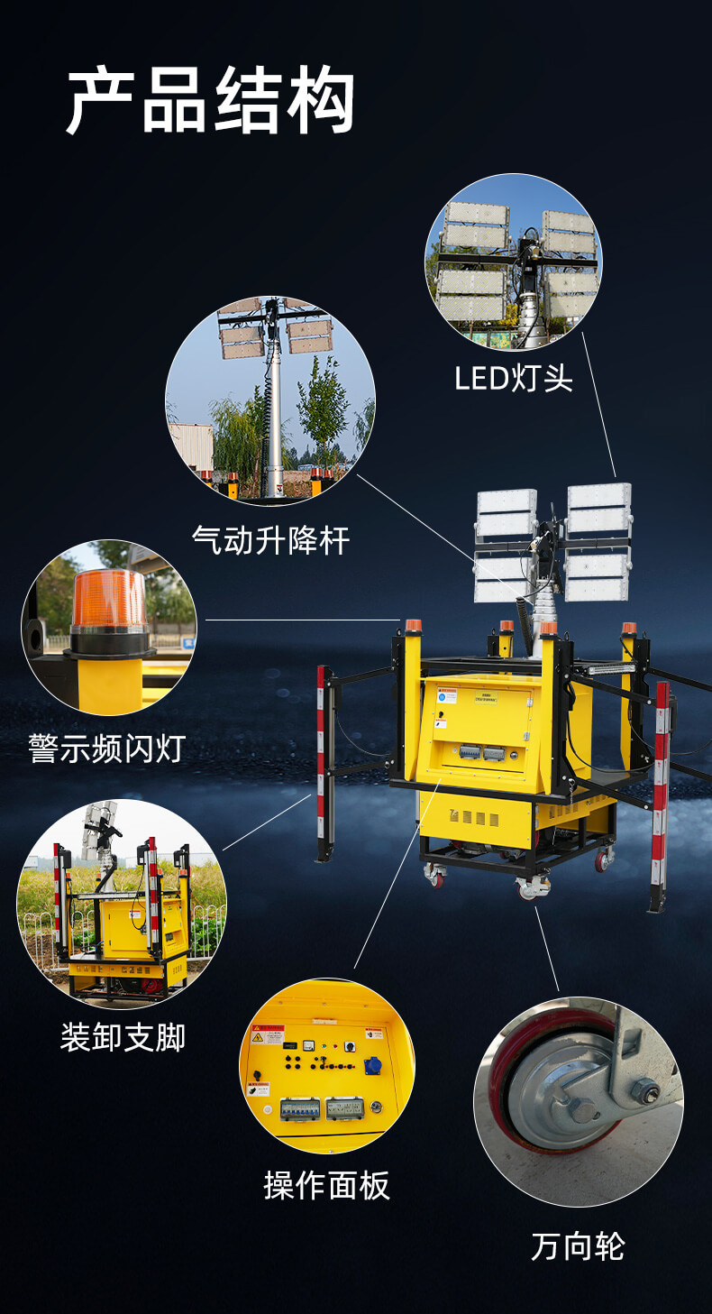 適用于維護搶修、事故處理、防汛抗洪、搶險救災等大面積照明。