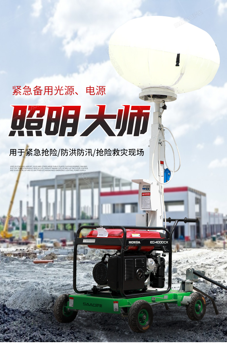球型工程照明車SZM-Q1000用于體育場館、機場、碼頭等大型公共場所,公路、鐵路、電力等緊急搶險現場,露天采礦現場,以及防洪防汛、搶險救災現場等其他需要緊急備用光源
