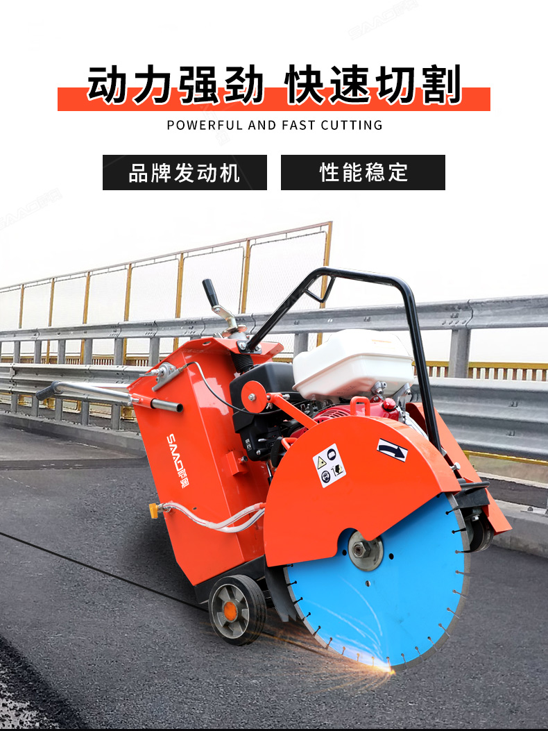 用于公路、市政、建筑、煤氣、通信部門修補公路或開挖溝槽時進行路面切割。相對于電動或柴油動力的路面切割機,操作輕巧省力,運輸方便,工作效率高。