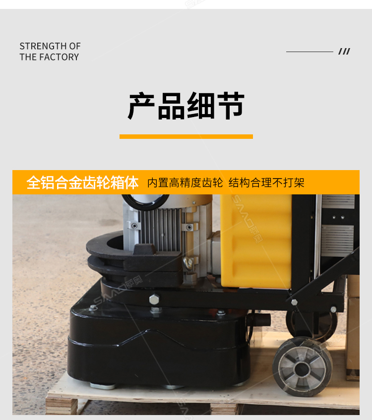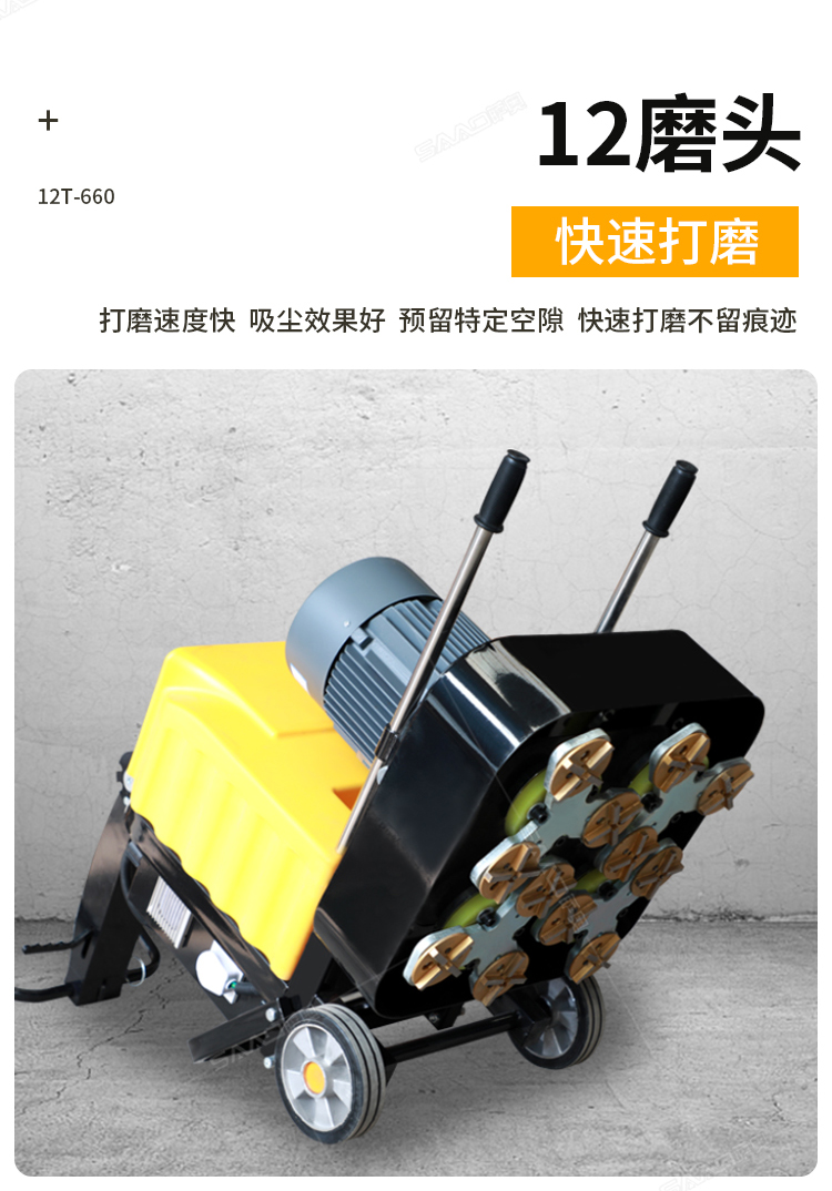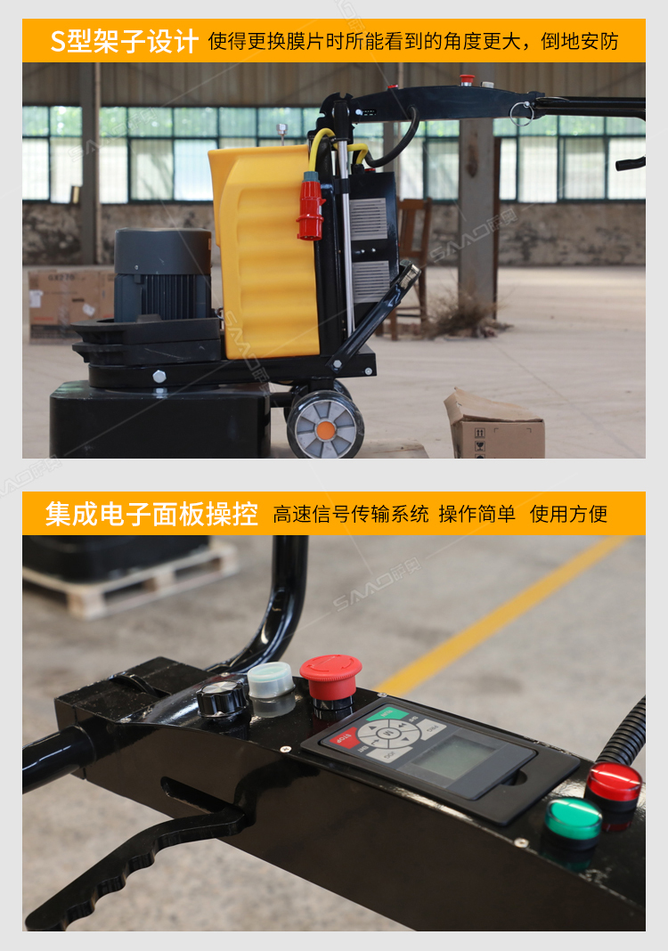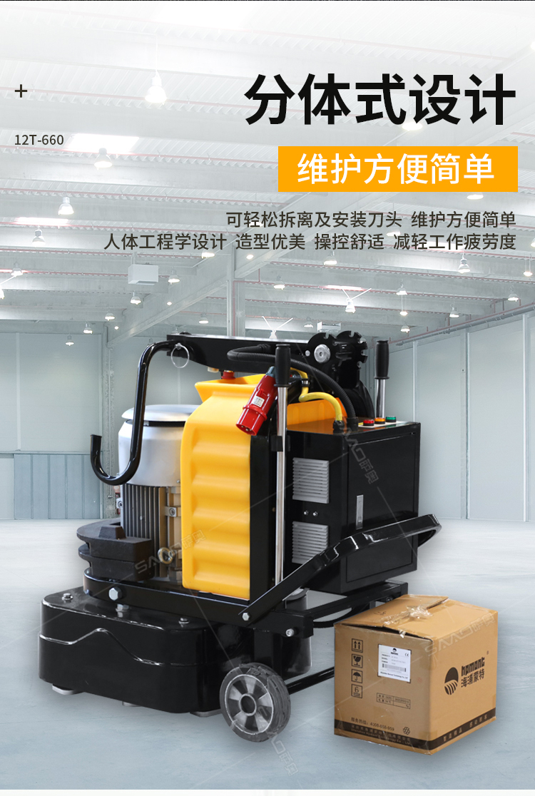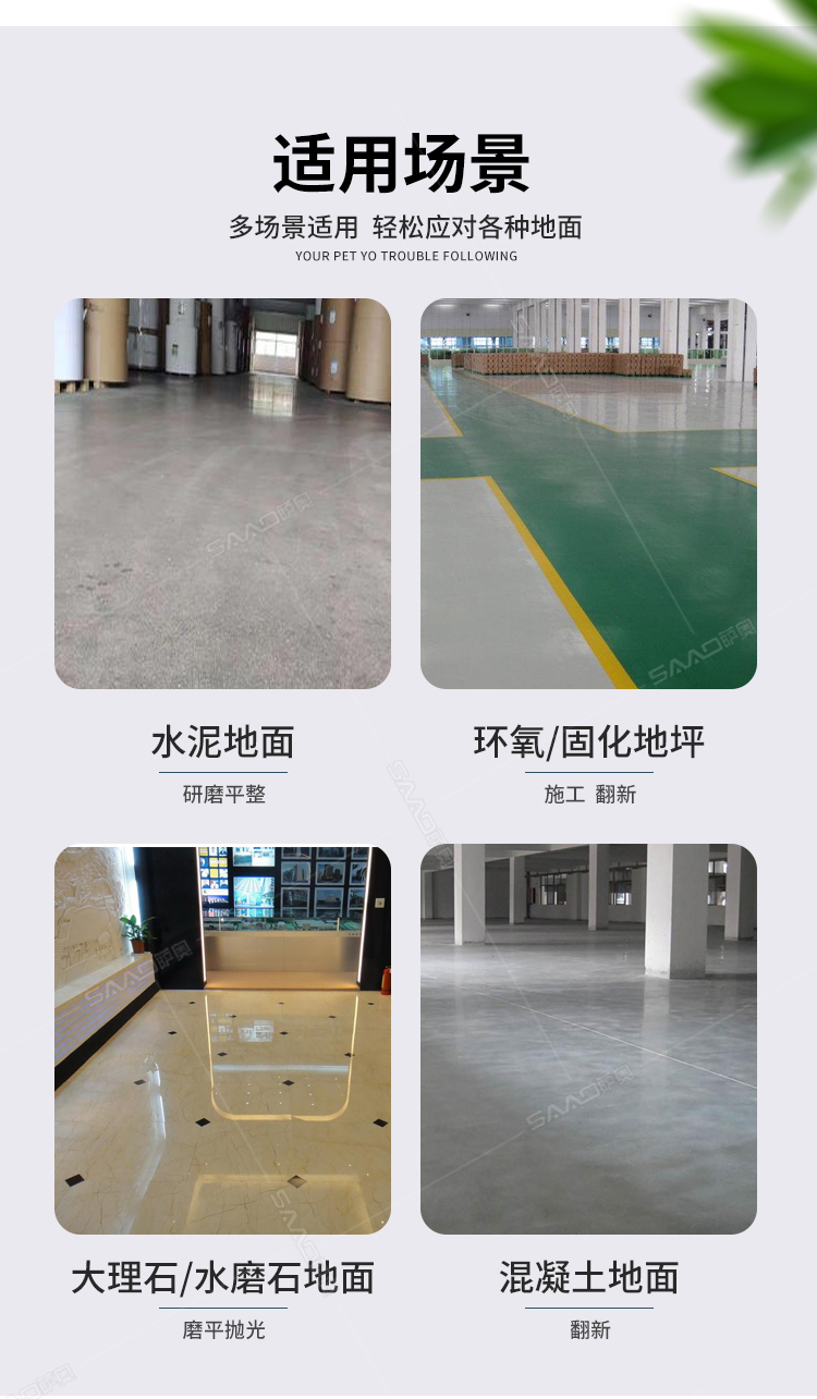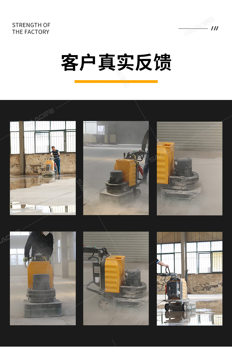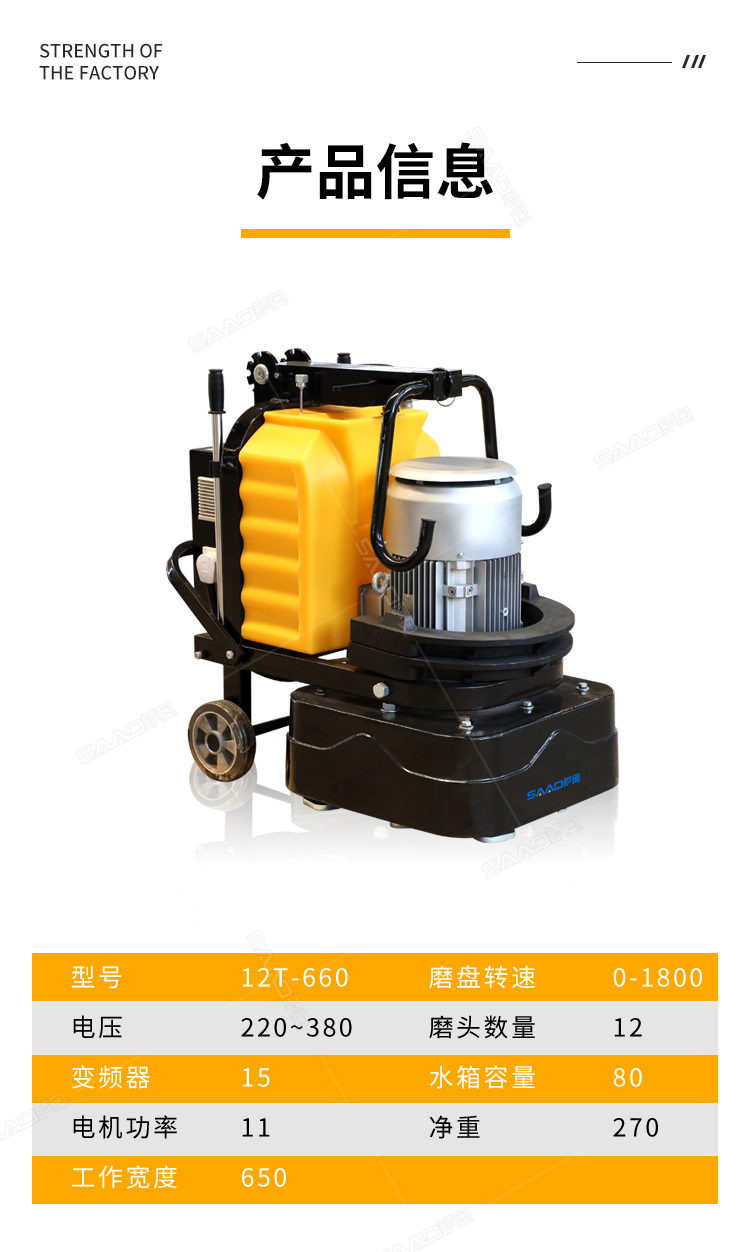 地坪研磨機其廣泛應用于混凝土地面,石材地面的研磨,拋光,最終達到舊地面翻新,新地面無塵的效果。 產品參數: 型號 電壓 變頻器 電機功率 工作寬度 磨盤轉速 磨頭數量 水箱容
