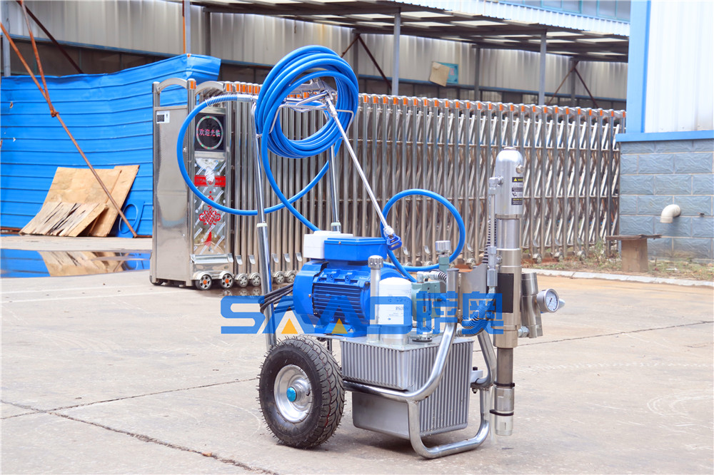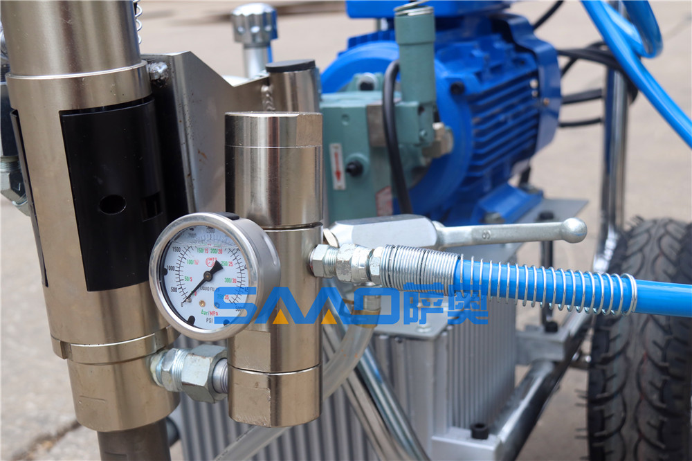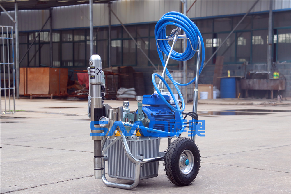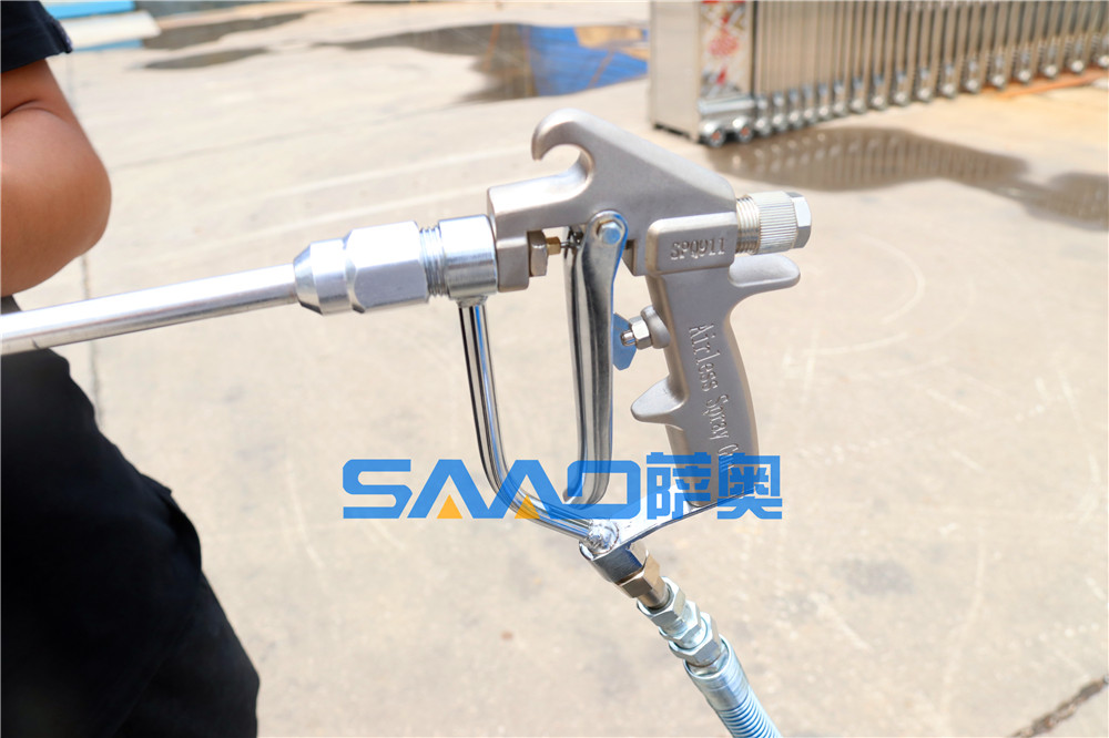 適應性材料:油漆、油性涂料、內外墻乳膠料、部分防腐乳料、高粘度丙烯酸涂料、水性涂料著色漆。 技術參數: 電機額定功率:5000W 電壓/頻率 220V/50HZ 最大輸出壓力:220bar 最大噴射