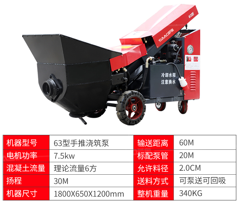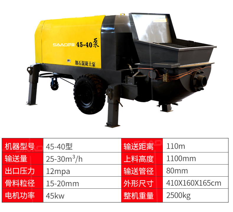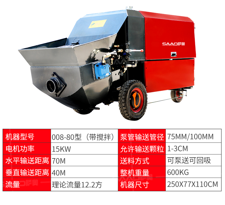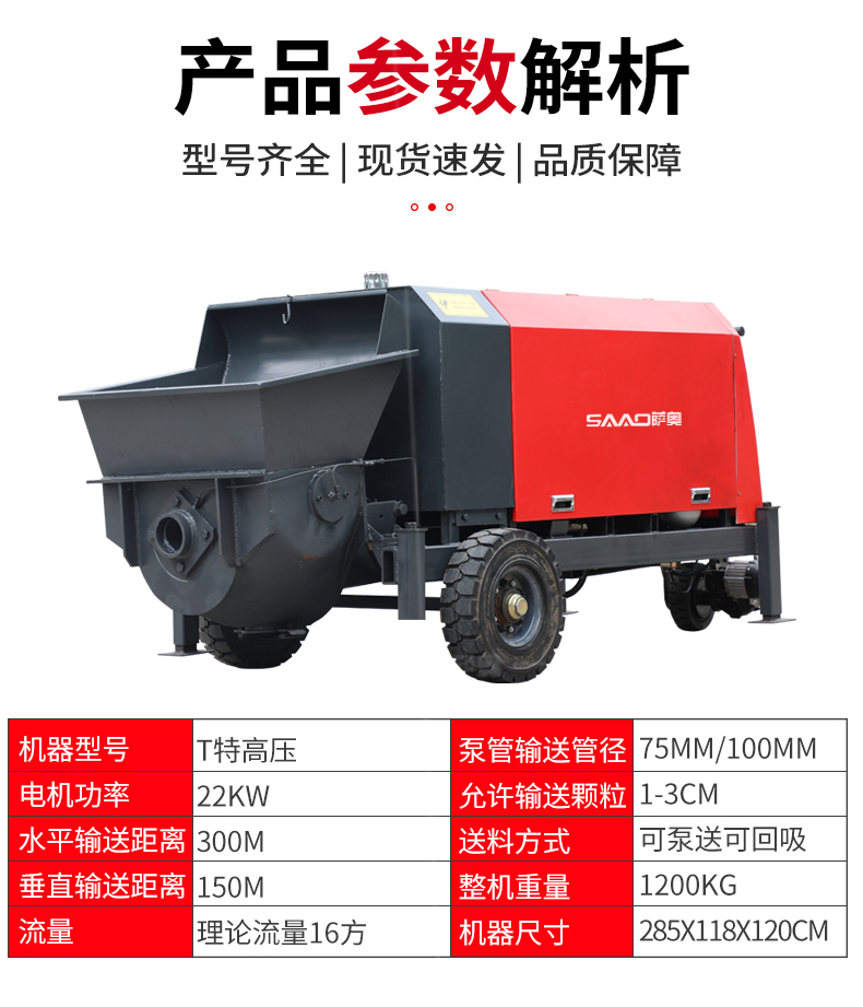 | 9 | 泵管輸送管徑 | 75mm/100mm | 野外施工、農村自建房管徑配100mm |