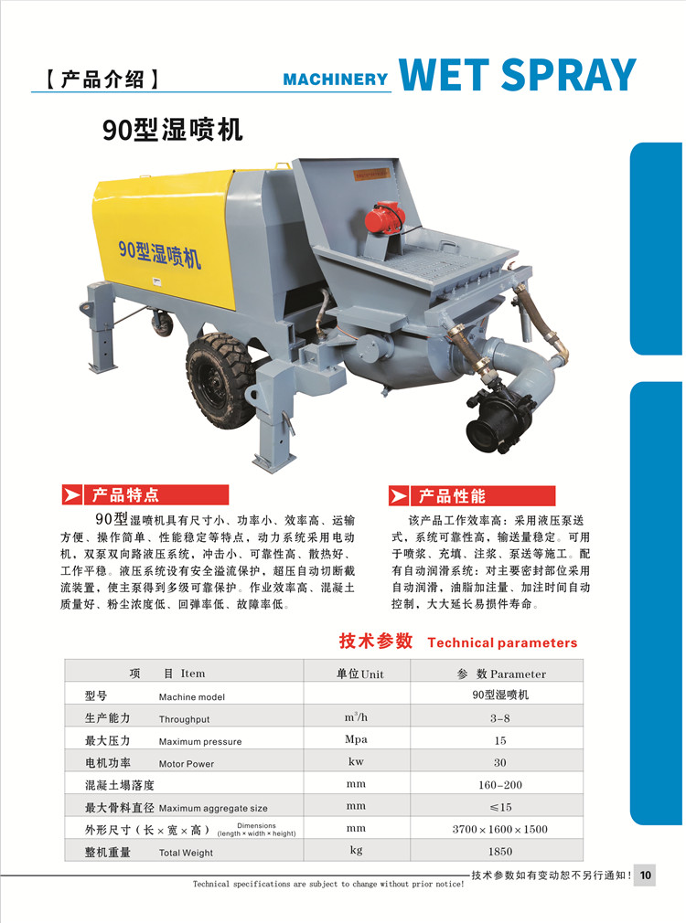 這款混凝土濕噴機(jī)主要用于混凝土的噴濕,可用于噴漿、充填、注漿、泵送等工程施工。能使混合料拌合均勻,水灰比準(zhǔn)確控制,有利于水泥的水化,因而粉塵小,回彈小、混凝土均質(zhì)性好,強(qiáng)度高。結(jié)構(gòu)合理、性能穩(wěn)定、操作維護(hù)方便、使用壽命長(zhǎng),應(yīng)用于鐵(公)路,地鐵,高層建筑,護(hù)坡(基坑)加固,水電工程,地下工程及礦山井巷噴射混凝土施工作業(yè)。