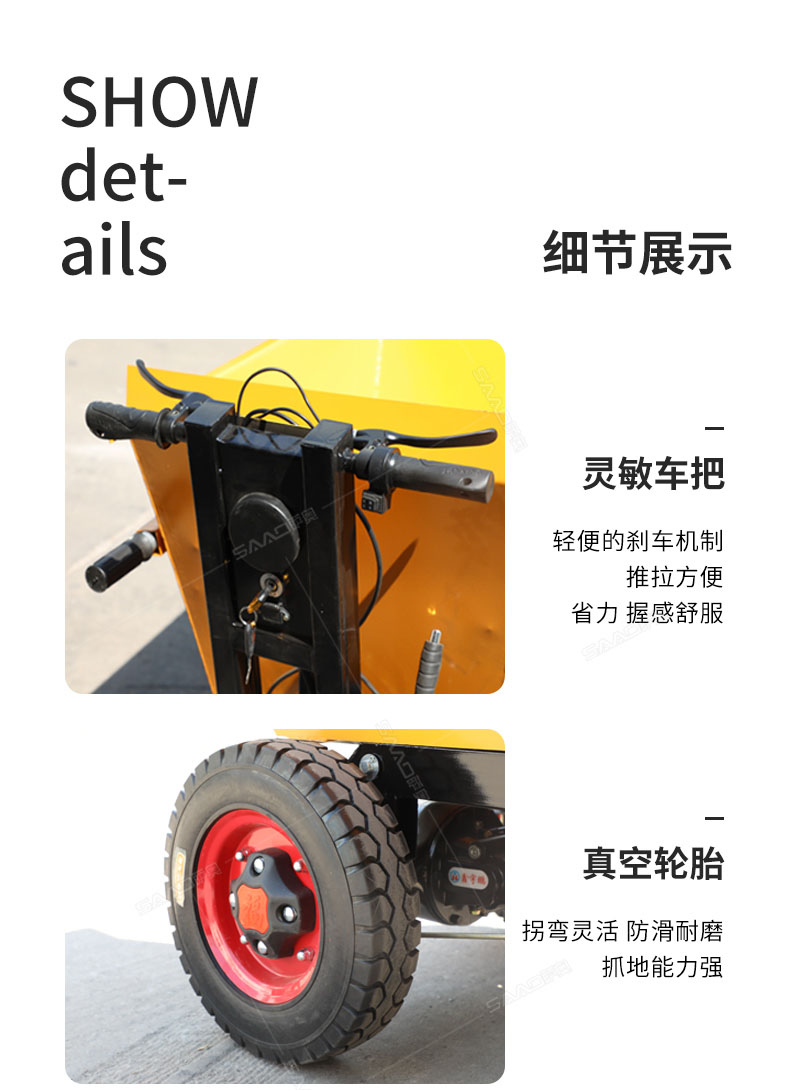 產品介紹: 此款車適用于建筑工地、室內裝修、養殖場、工廠等場所,運輸沙子、水泥、土方、混凝土、建筑垃圾生活垃圾、養殖場動物糞便、飼料等,體積小操作簡單靈活,可原地360度轉圈,可進入樓層、樓道、電梯、吊籃等各種狹小空間作業,是您必不可少的裝卸助手。