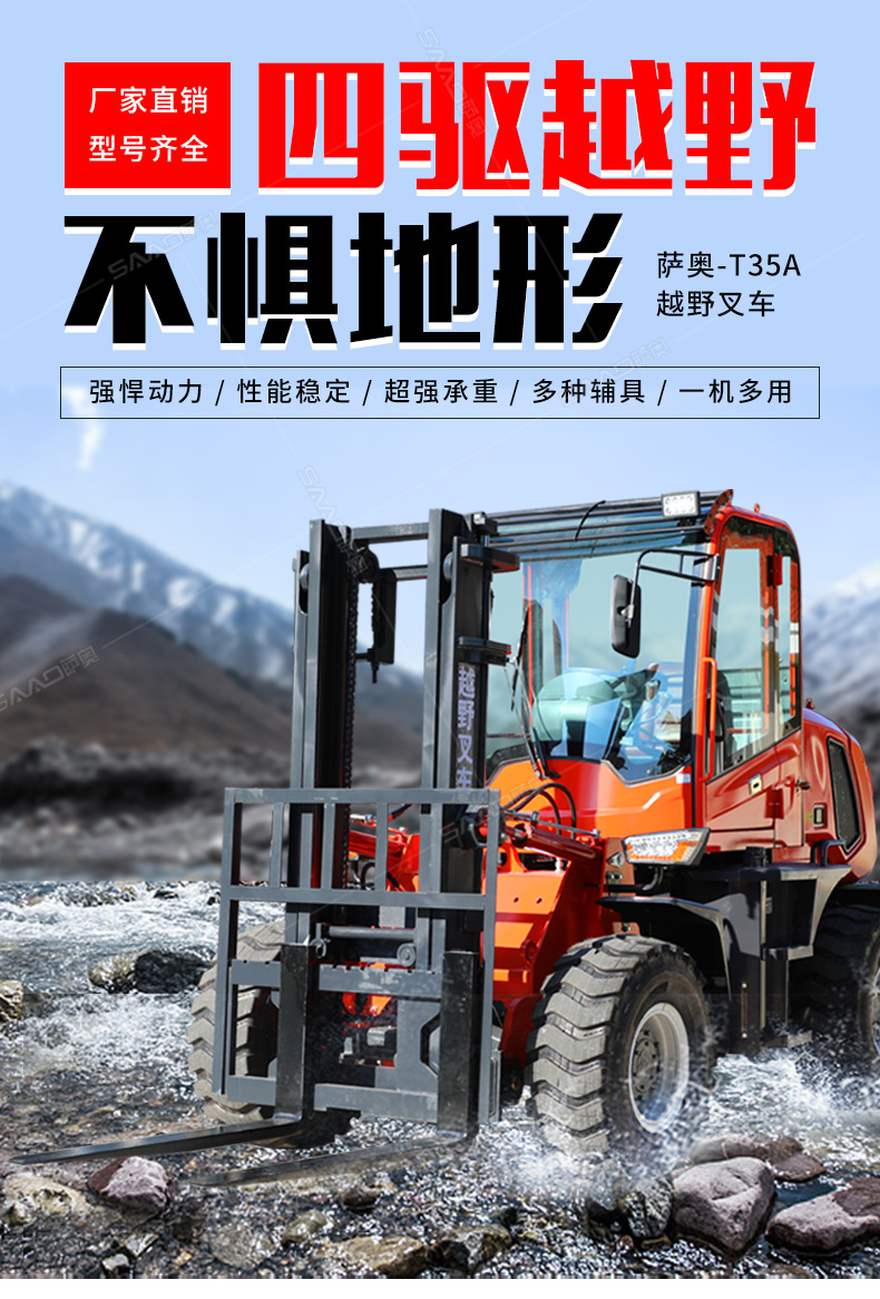 公司供應各種規格四驅越野叉車,總有一款適合您。該系列產品選配不同的工具可滿足不同施工要求,應用廣,性能優,歡迎來廠考察,具體詳情可電話咨詢。