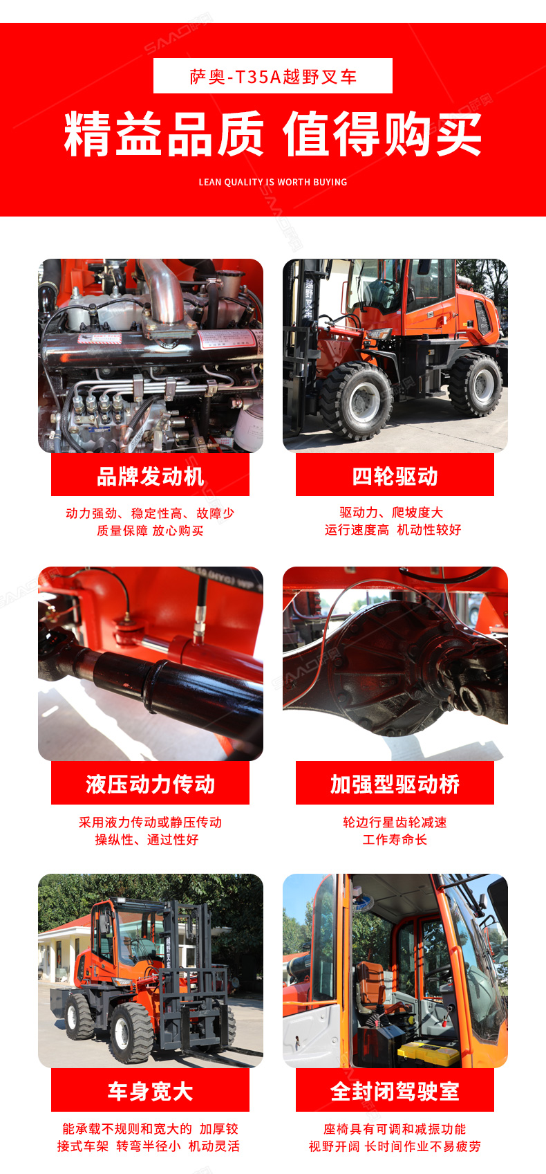 T35A越野叉車橘紅色
