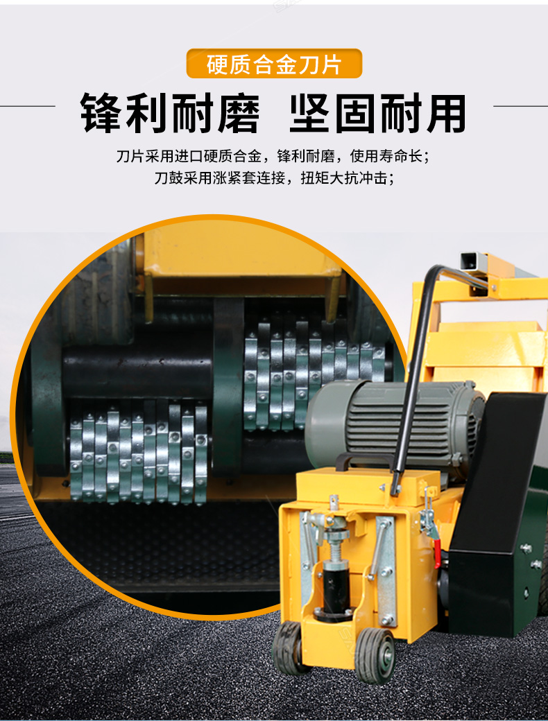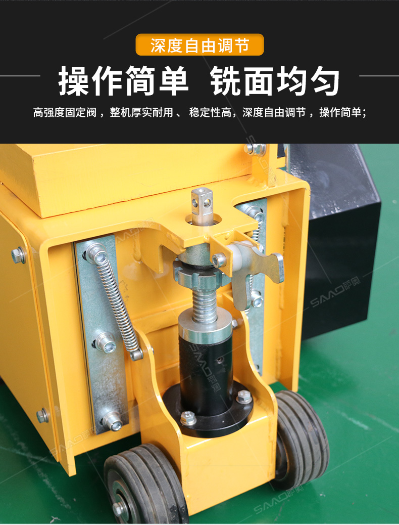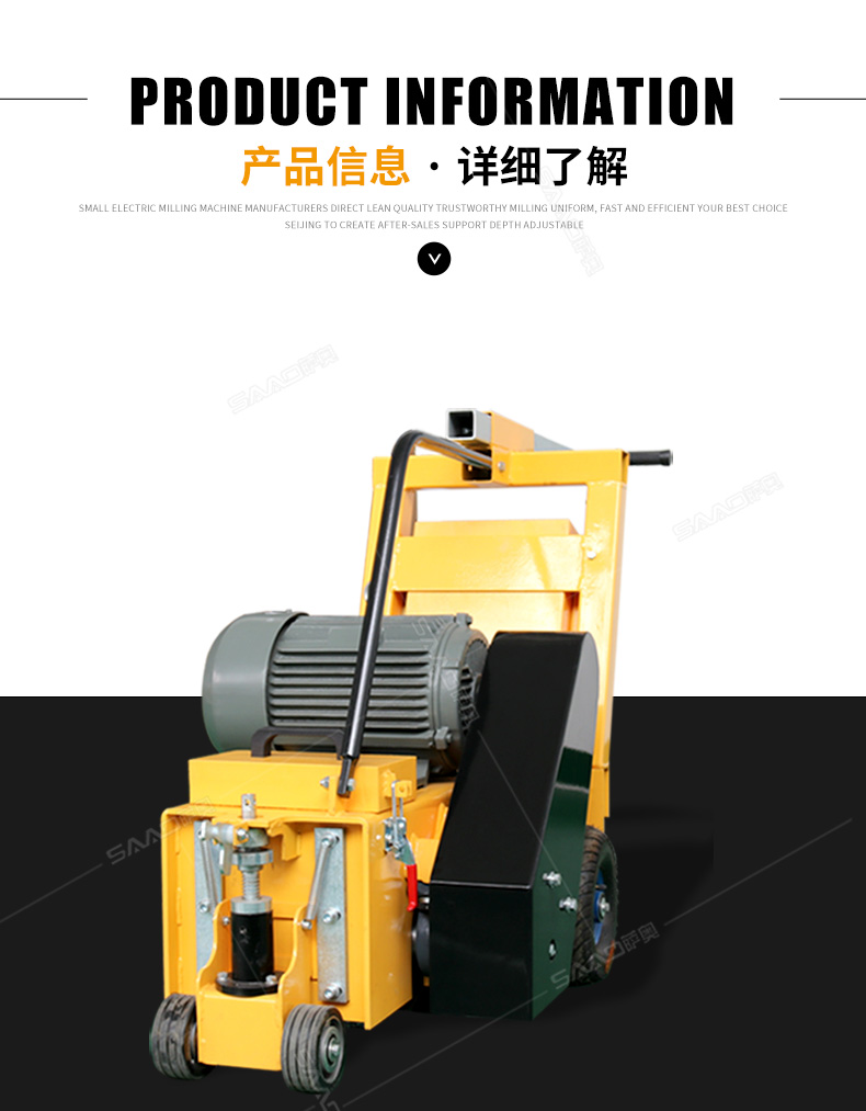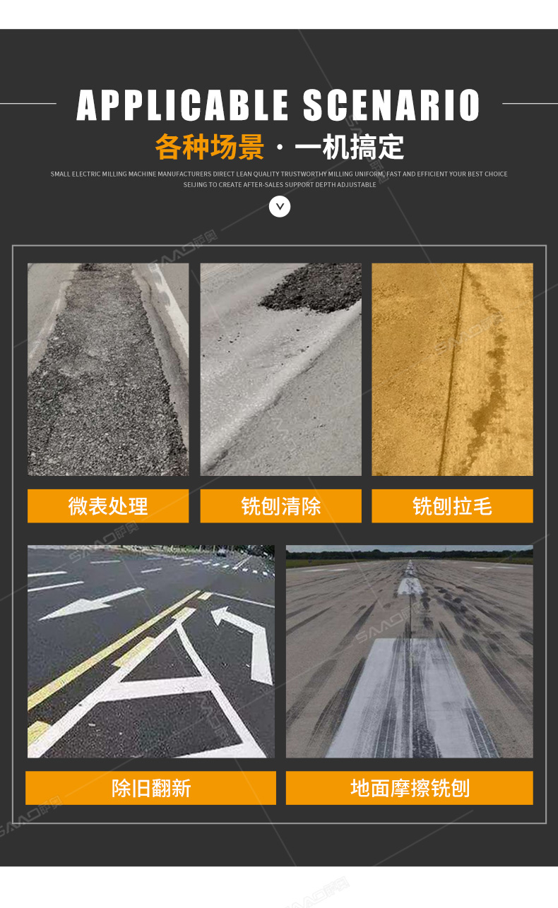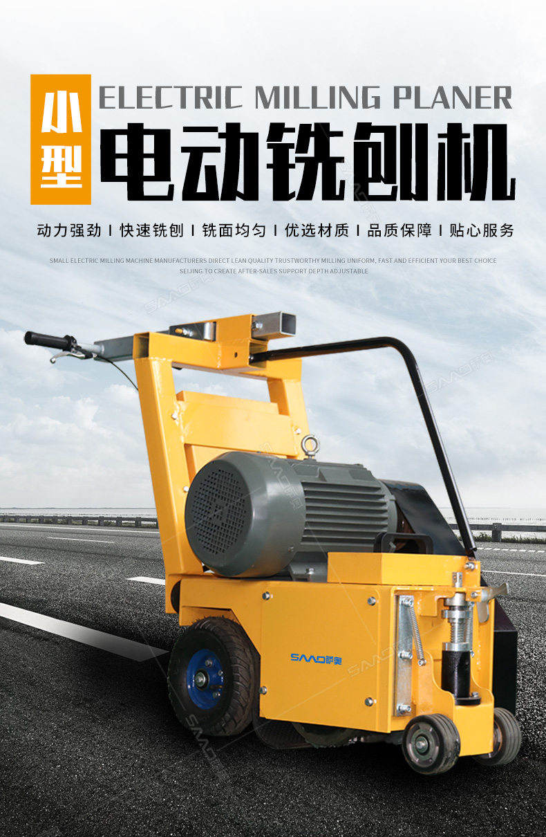 小型電動(dòng)銑刨機(jī)用于橋面鋪設(shè)瀝青或車間舊的混凝土地面重新攤鋪混凝土之前,清除水泥浮漿以及鏟平拉毛,也用于清除建筑施工中遺留的堅(jiān)硬灰渣。