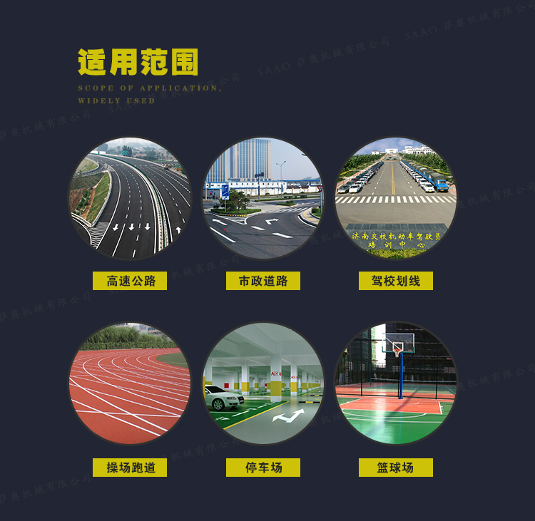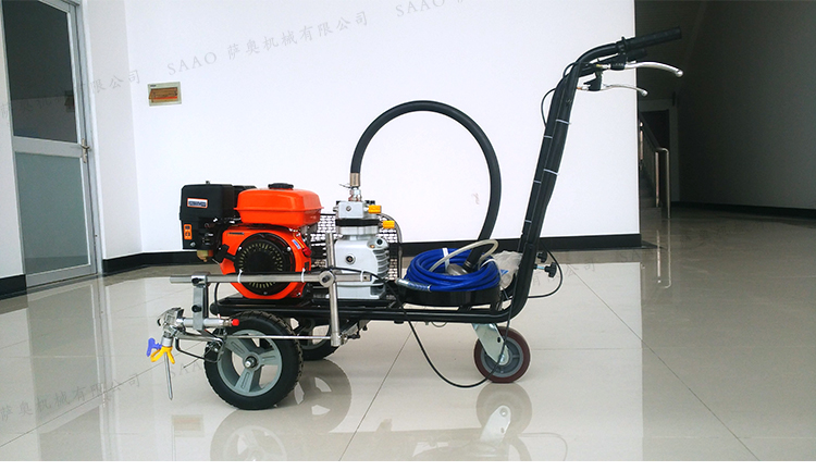 冷噴劃線機用汽油機帶動高壓泵的無氣噴涂技術運用于運動場地劃線車,噴出的線型清晰、流暢、飽滿、均勻、工作效率高。