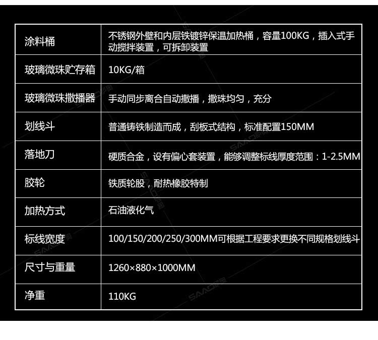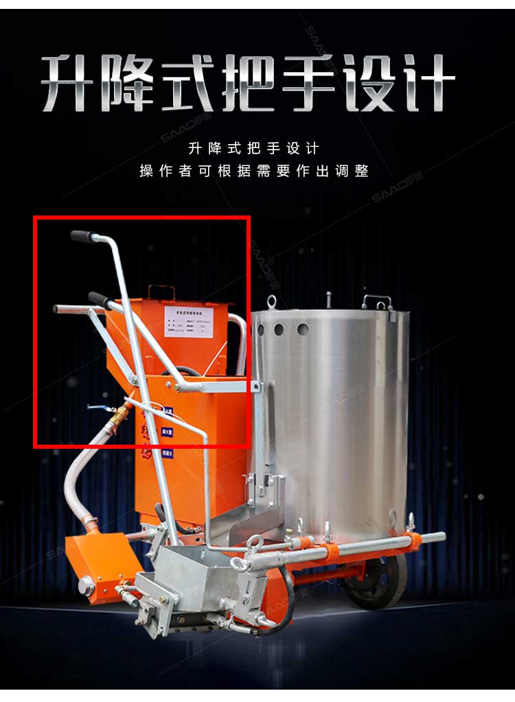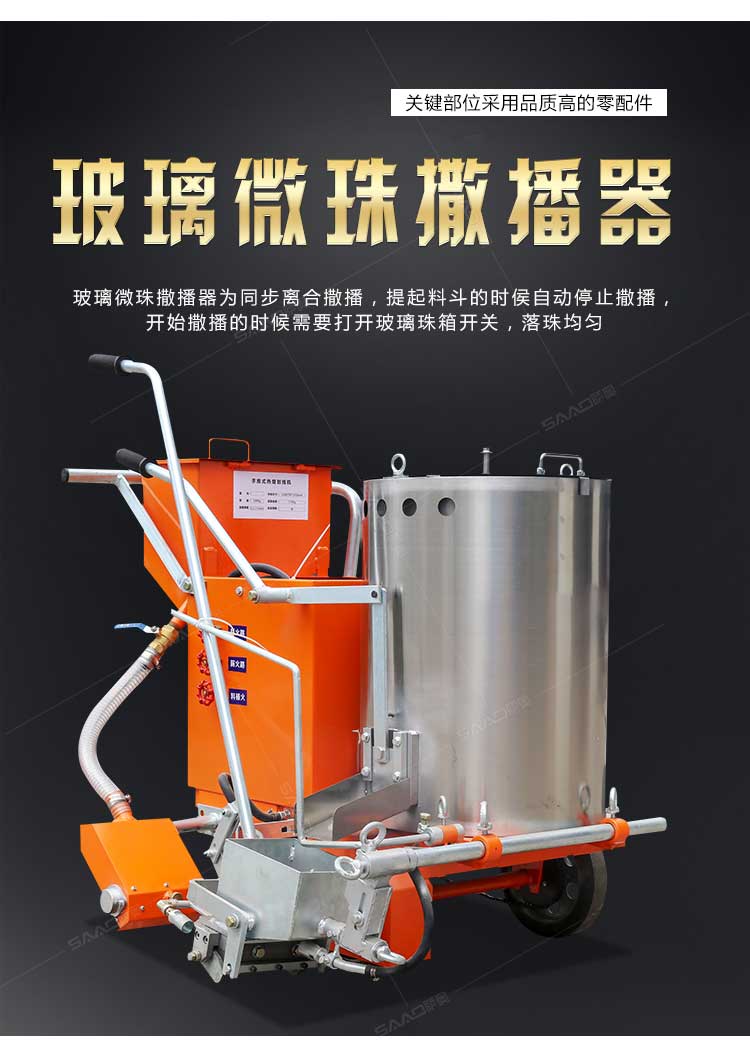 SAAO-160手推熱熔劃線機采用普通鑄鐵劃線斗,同步離合玻璃微珠自動撒播器,具有結構簡單、輕便、價優、性能優良等特點。