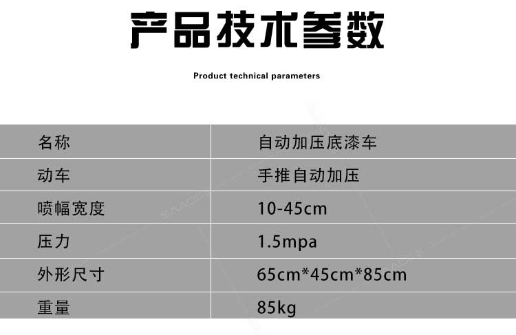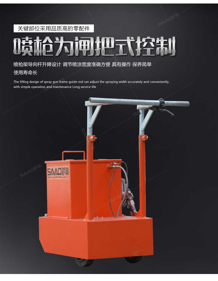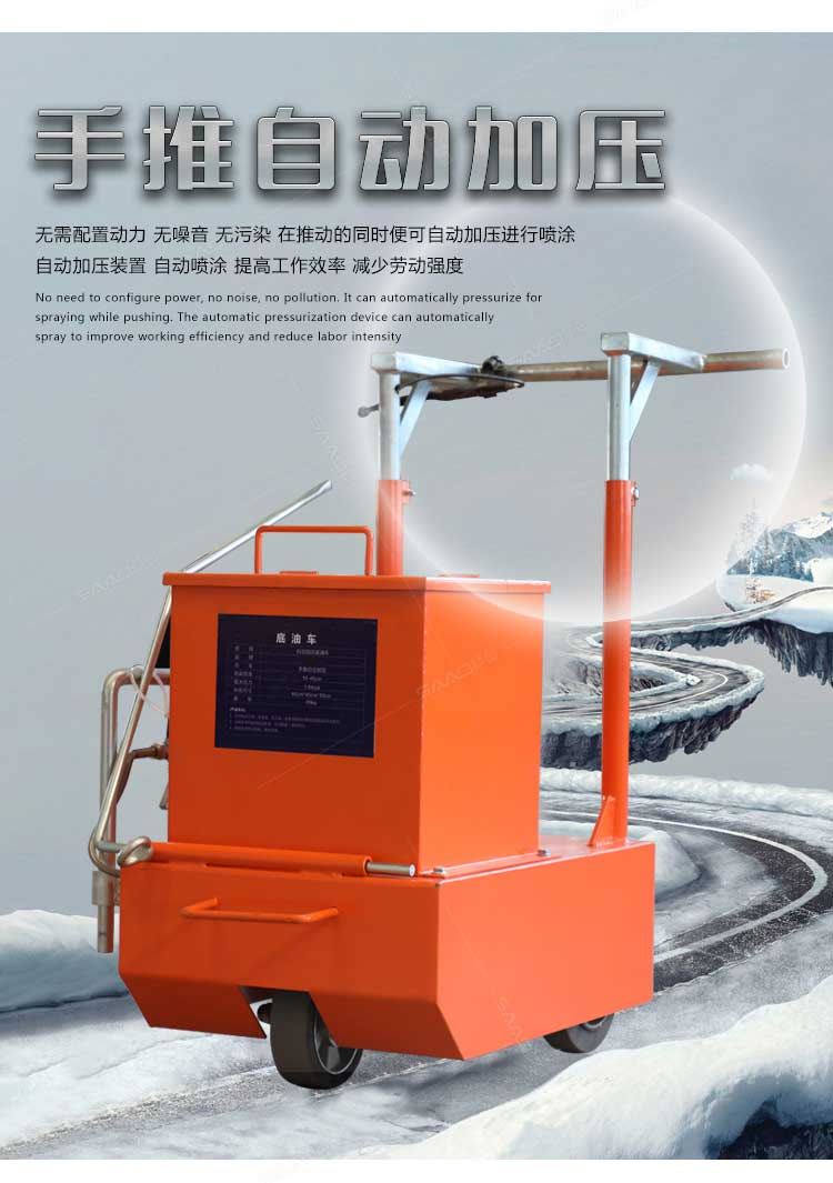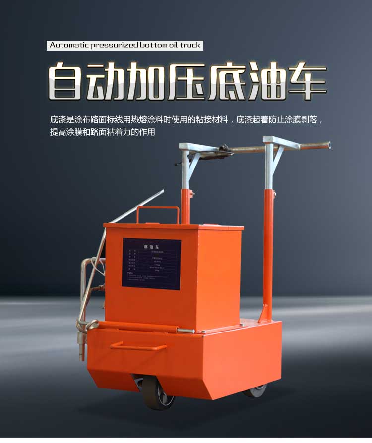 產品介紹: 底漆是涂布路面標線用熱熔涂料時使用的粘接材料,底漆起著防止涂膜剝落,提高涂膜和路面粘著力的作用。自動加壓底漆車是熱熔標線施工的輔助設備,該機采用行進機械
