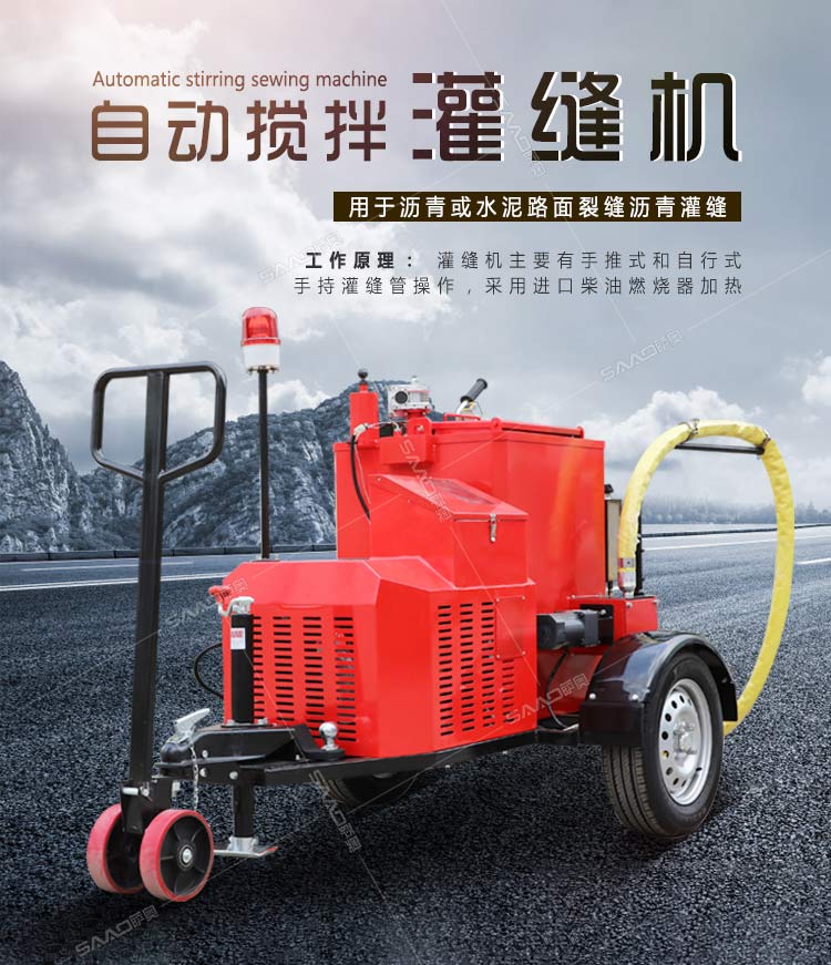 120升自動攪拌款灌縫機用于瀝青或水泥路面裂縫瀝青灌縫,注意:在灌縫前要對裂縫內的塵土進行清縫處理。