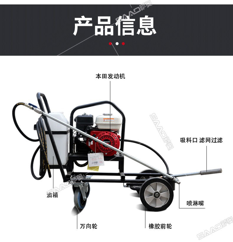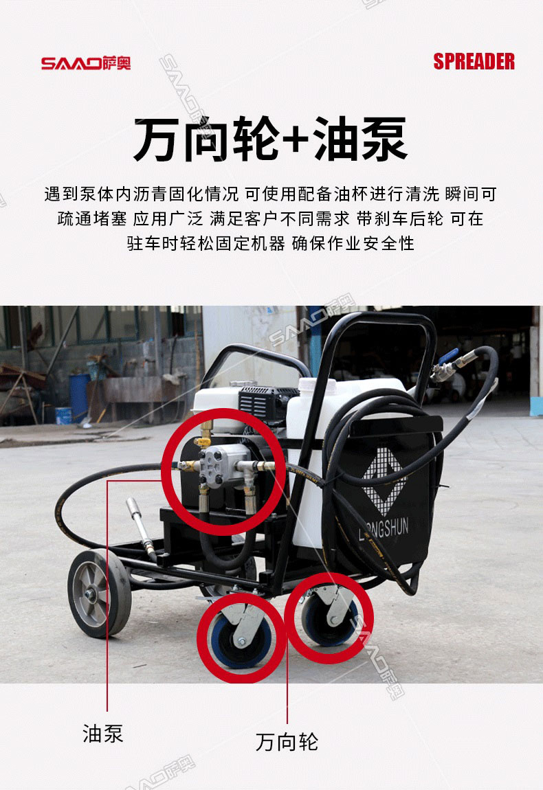 小型乳化瀝青撒布機用于修補瀝青道路上的坑槽,裂縫或?qū)磳⒗匣穆访孢M行表層噴層修復(fù)翻新,由于在養(yǎng)護瀝青道路時經(jīng)常需要對路面均勻噴灑乳化瀝青或防水材料。