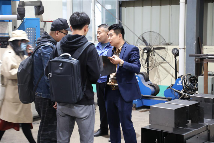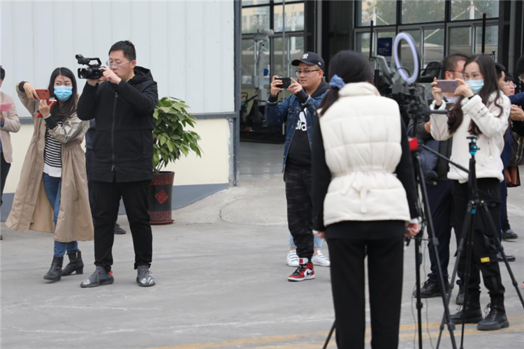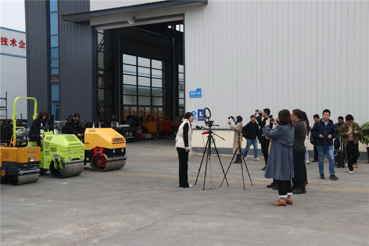 在薩奧機械負責人韓廣非的陪同下,采訪團先后參觀了生產加工廠區和電商辦公區兩大業務端。在新廠區,采訪團剛下大巴車,就被正在直播演示怎樣操作壓路機的美女主播所吸引,大家紛紛走向前拍照、攝像、采訪忙的不亦說乎。后來才知道,大家都比較好奇一般都是直播買衣服、鞋子等的,沒想到壓路機這種特種作業設備也可以直播,而且還這么有意思。其實對于這種特種設備,直播時立馬成交的并不多,但是薩奧卻一直堅持在做,因為他們認為:設備原本就是冰冷的,又是特種設備,客戶只通過詳情介紹并不能真正感受到設備本省的性能、特點等,這樣直播操作,可以讓用戶更直接的去感受設備本身。