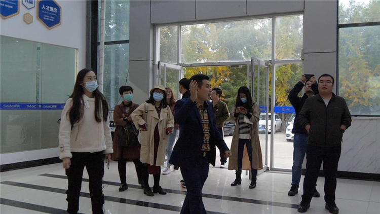 圖/采訪團在薩奧機械負責人韓廣非陪同下進行參觀采訪