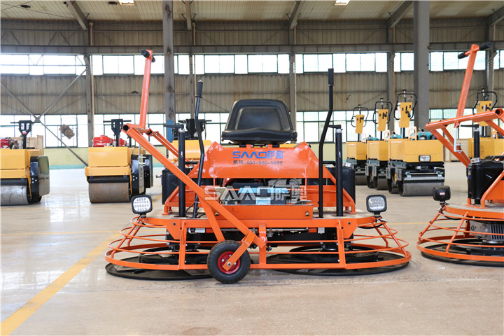 在座駕式抹光機啟動使用前,要先檢查機器各部位緊固件是否松動,并及時緊固;在工作施工結束后,及時清理粘黏于抹刀磨盤上的混凝土,免得影響下次使用;在放置座駕式抹光機時,應避免風吹日曬,如果長時間不用就盡量停放在室內,在室外要做好防雨工作,用罩布蓋好;經常檢查機器各部潤滑件的潤滑狀態,保持機器的工作速度。