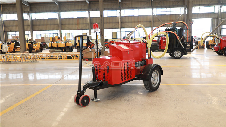 作為路面常見問題的裂縫,我們對此采取的態度是:及時封閉,禁止蔓延。瀝青灌縫機是對裂縫進行熱修補的設備,將瀝青料加熱灌入裂縫中,使灌縫料與裂縫貼合,封閉裂縫,禁止其蔓延。在瀝青灌縫機施工過程中需要配合的是,對裂縫進行擴縫,并清理干凈,讓灌縫料與裂縫面更好的貼合。