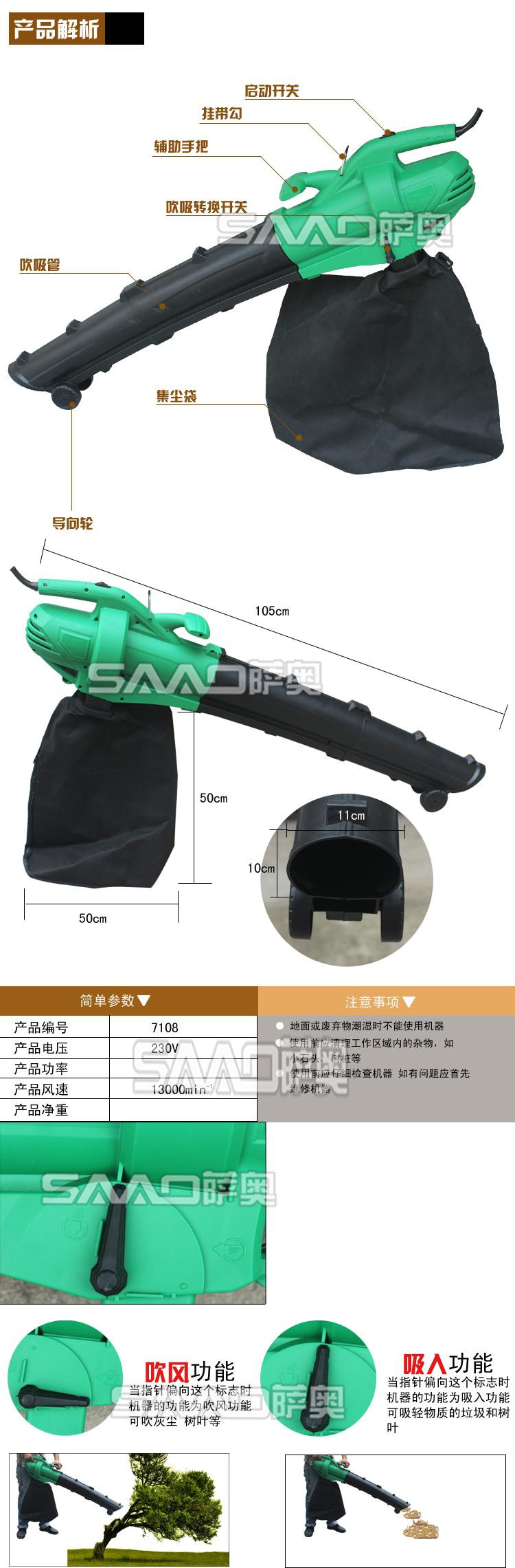 3000W電動吹吸葉一體機 樹葉機 吸葉機 吹風機 吸塵器 1.產品人性化設計,使用方便,同時結構小巧也便于收藏; 2.3000W功率,真正的大功率,大吸力,大吹力,大容量收集袋 3.漂亮外觀
