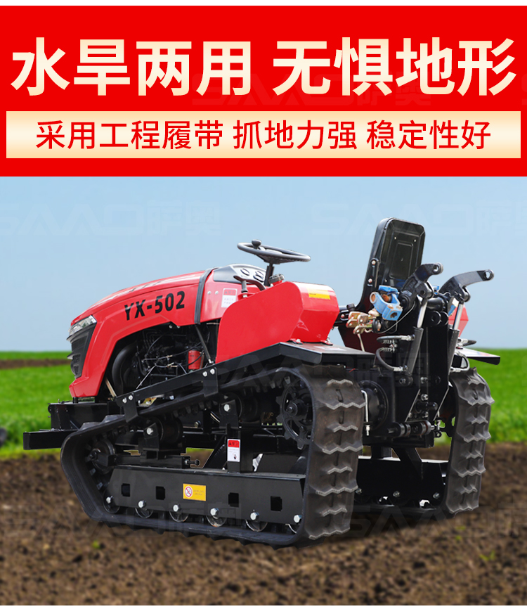 履帶拖拉機本機能完成耕、耙作業(yè),具有碎土能力強、耕后地表平坦等特點。采用寬耕幅、對稱懸掛使輪跡全部覆蓋,有省時、省力、作業(yè)質(zhì)量高成本低等特點。
