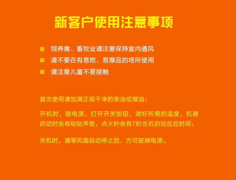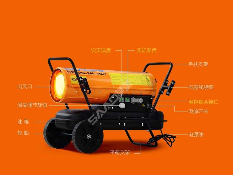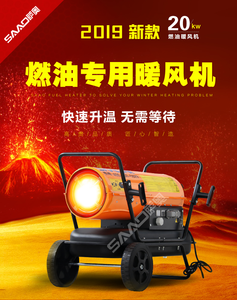 20KW燃油暖風機性能特點: 1、不銹鋼體,內含風機 2、可調節溫控:液體膨脹溫控0C°-50C°可調節,采用韓國彩虹機械溫控器。 3、采用高性能電機,絕緣防護等級F。 4、內置自動過熱