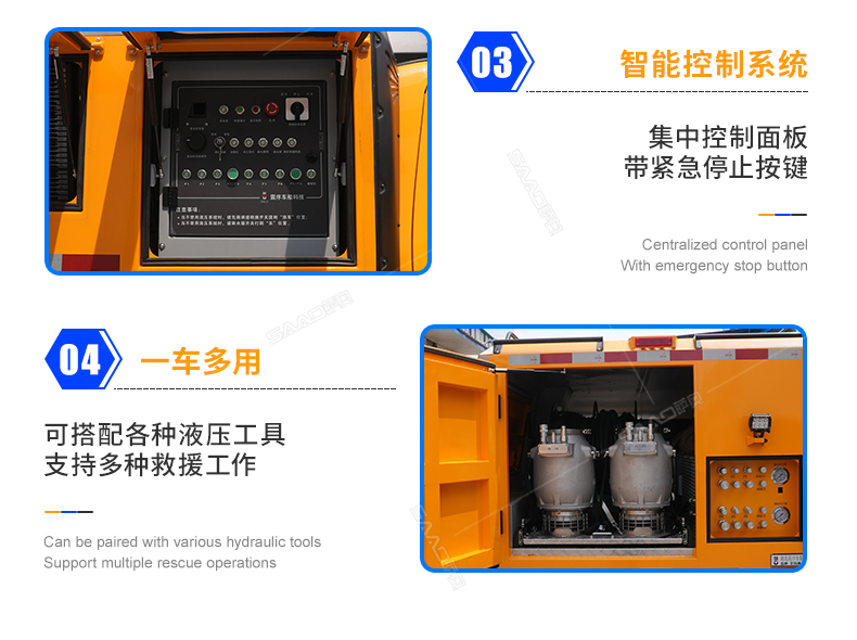 該皮卡多功能救援車(chē)作為大功率移動(dòng)式的液壓動(dòng)力源,可驅(qū)動(dòng)多達(dá)百余種不同功能的液壓工具進(jìn)行作業(yè)