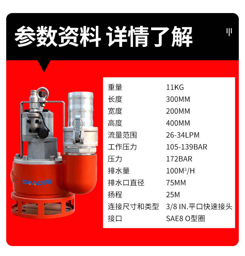 薩奧液壓渣漿泵輕質、緊湊和高效,液壓渣漿泵的用途非常廣泛,包括在建筑工地、水淹沒的開挖地和地下室連續泵送清水或污水、城市洪澇等。 這種泵以具有特殊驅動軸、油封和軸承