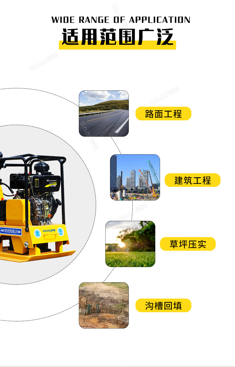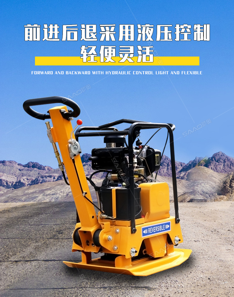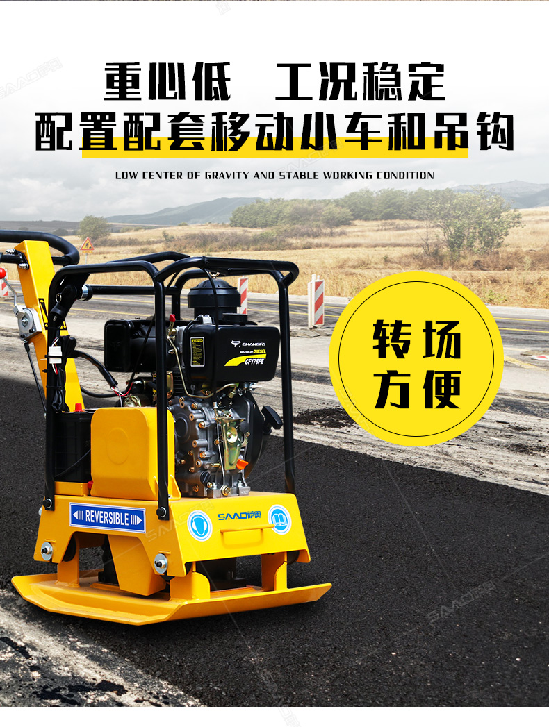 雙向平板夯適用于路基邊緣、橋涵、管道、溝槽底部等狹長地帶的壓實