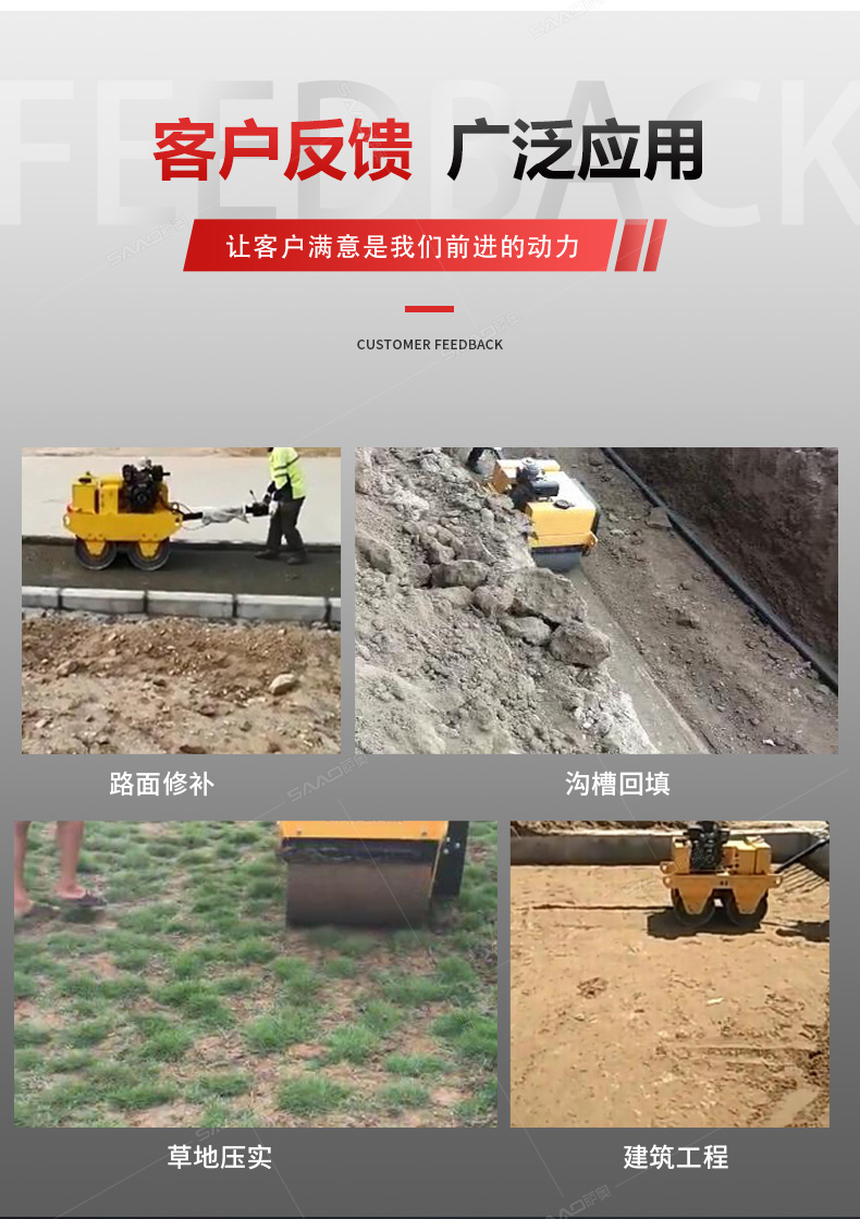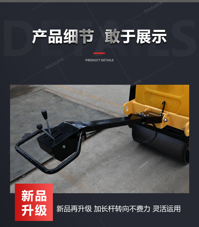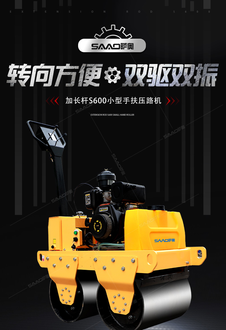 加長桿s600雙輪手扶壓路機在原有產(chǎn)品基礎(chǔ)上增加了塑料水箱和加長桿,主要用于溝渠基礎(chǔ),道路,體育場地的壓實整平,也可用于壓實瀝青表面的作業(yè)。