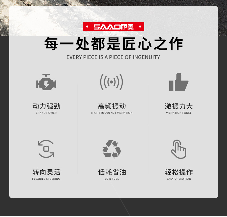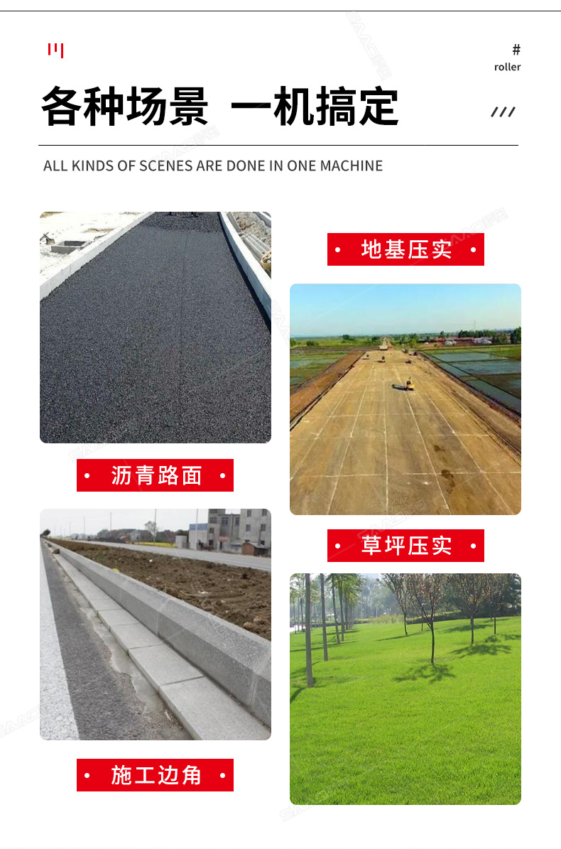 主要用于溝渠基礎(chǔ),道路,體育場地的壓實(shí)整平,也可用于壓實(shí)瀝青表面的作業(yè)。