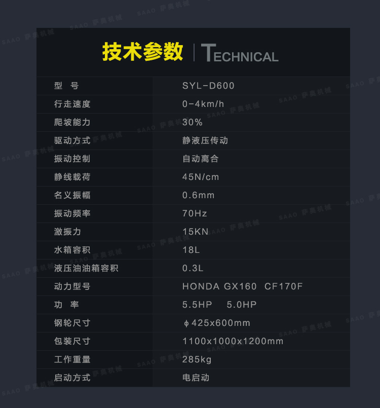 主要用于溝渠基礎,道路,體育場地的壓實整平,也可用于壓實瀝青表面的作業。