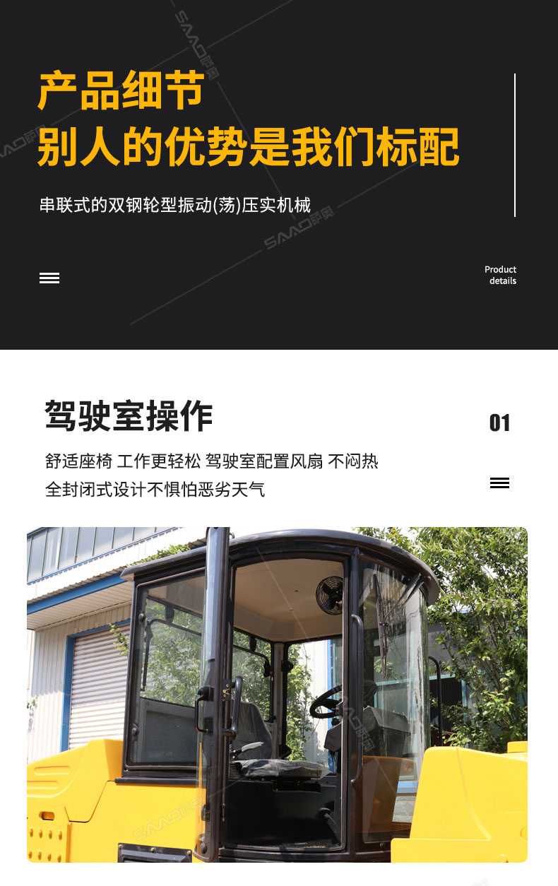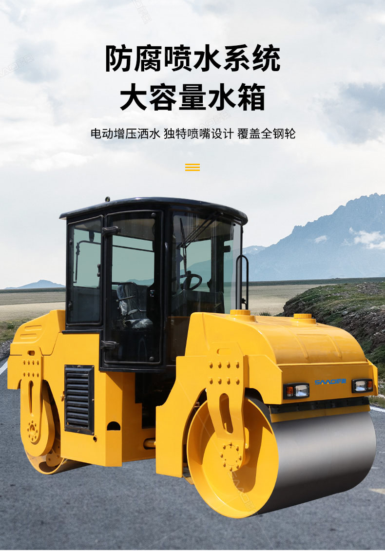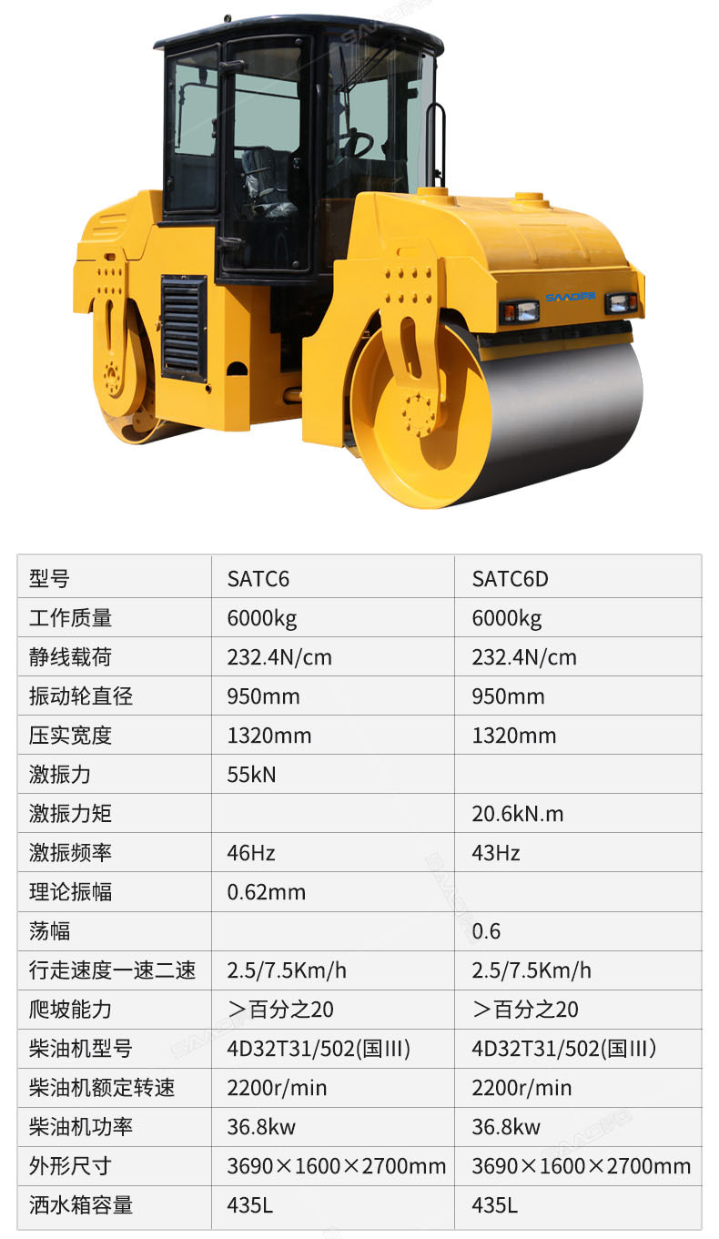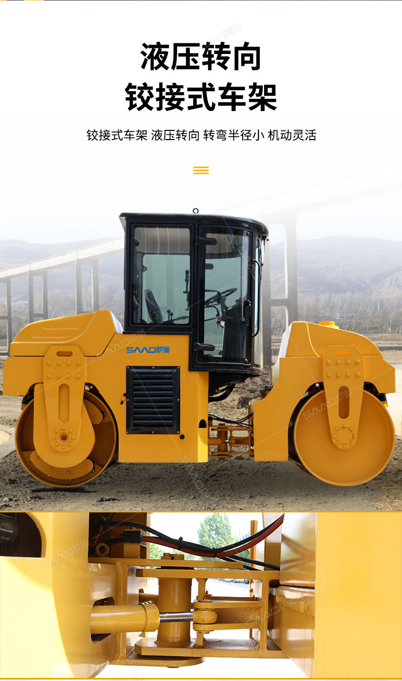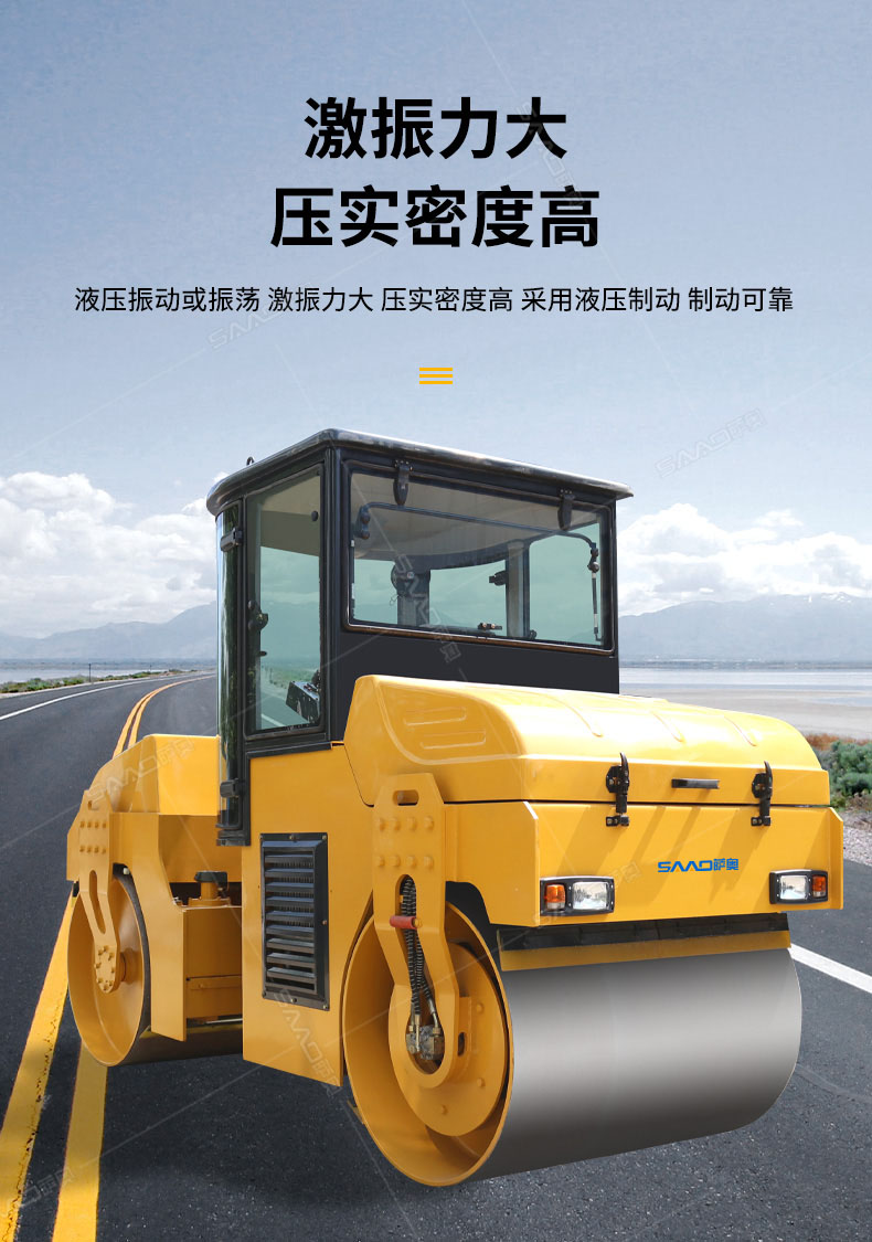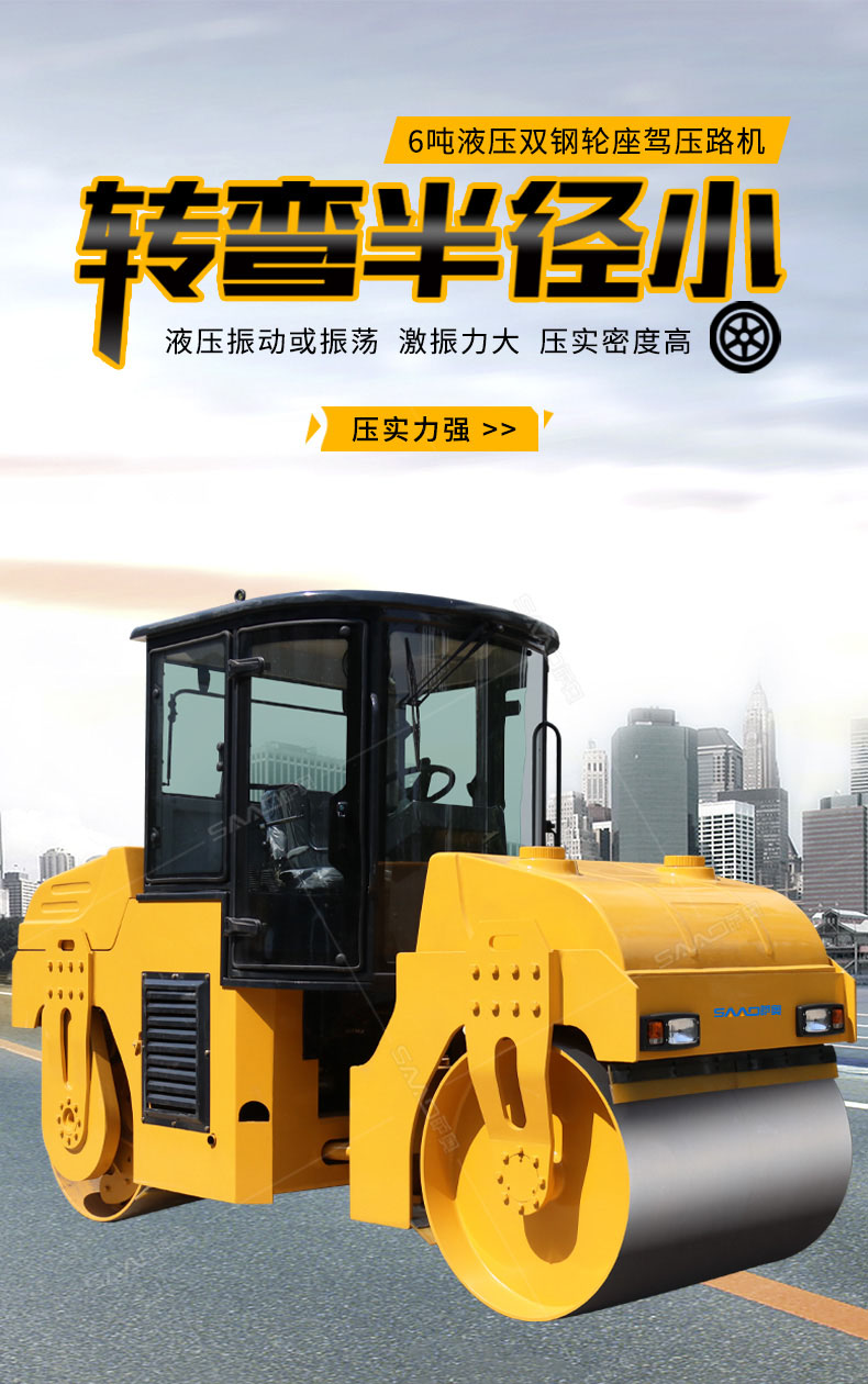 SAC6型振動壓路機(jī)(SAC6CD型振蕩壓路機(jī))是一種串聯(lián)式的雙鋼輪型振動(蕩)壓實(shí)機(jī)械;該機(jī)主要由鉸接式車架、振動(蕩)輪、轉(zhuǎn)向輪,動力裝置、液壓振動、液壓轉(zhuǎn)向、操縱機(jī)構(gòu)、電動灑水和