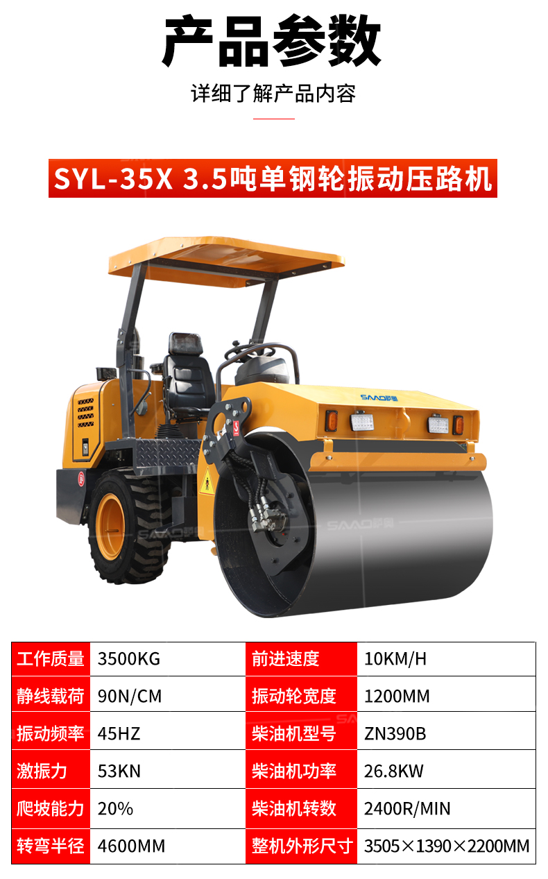 SYL-35X 3.5噸單鋼輪振動座駕壓路機