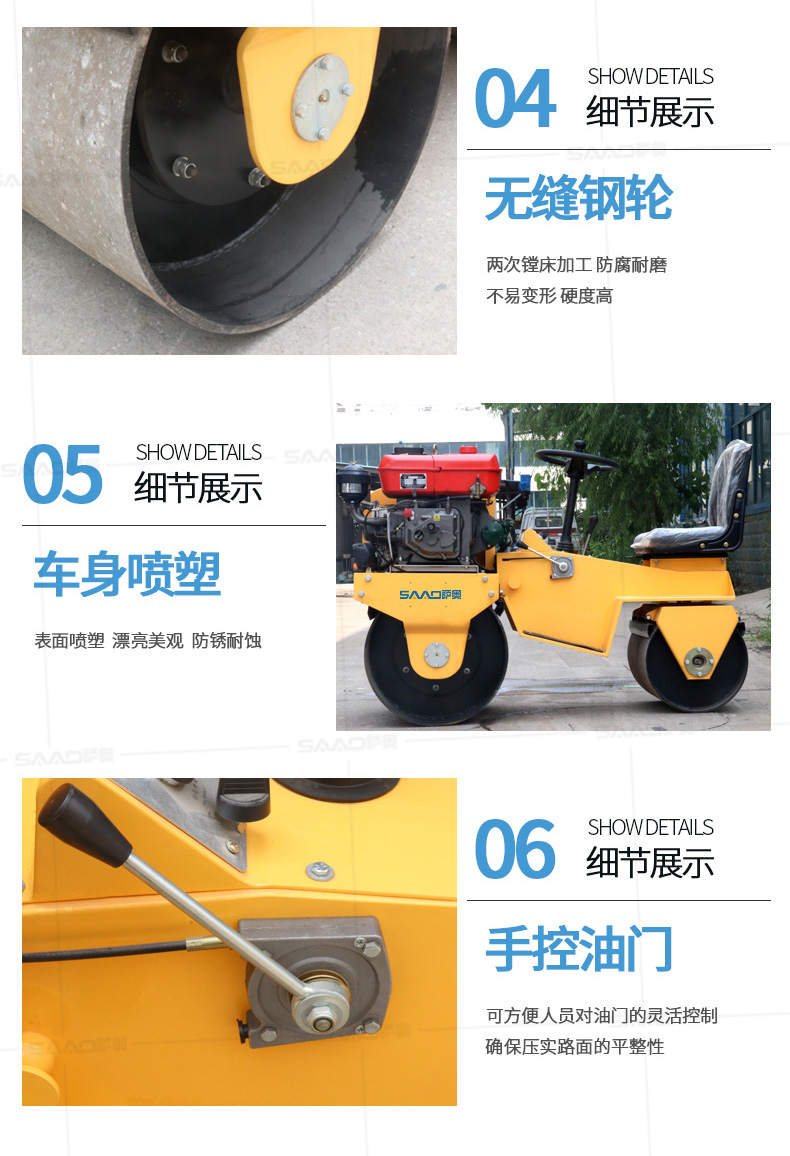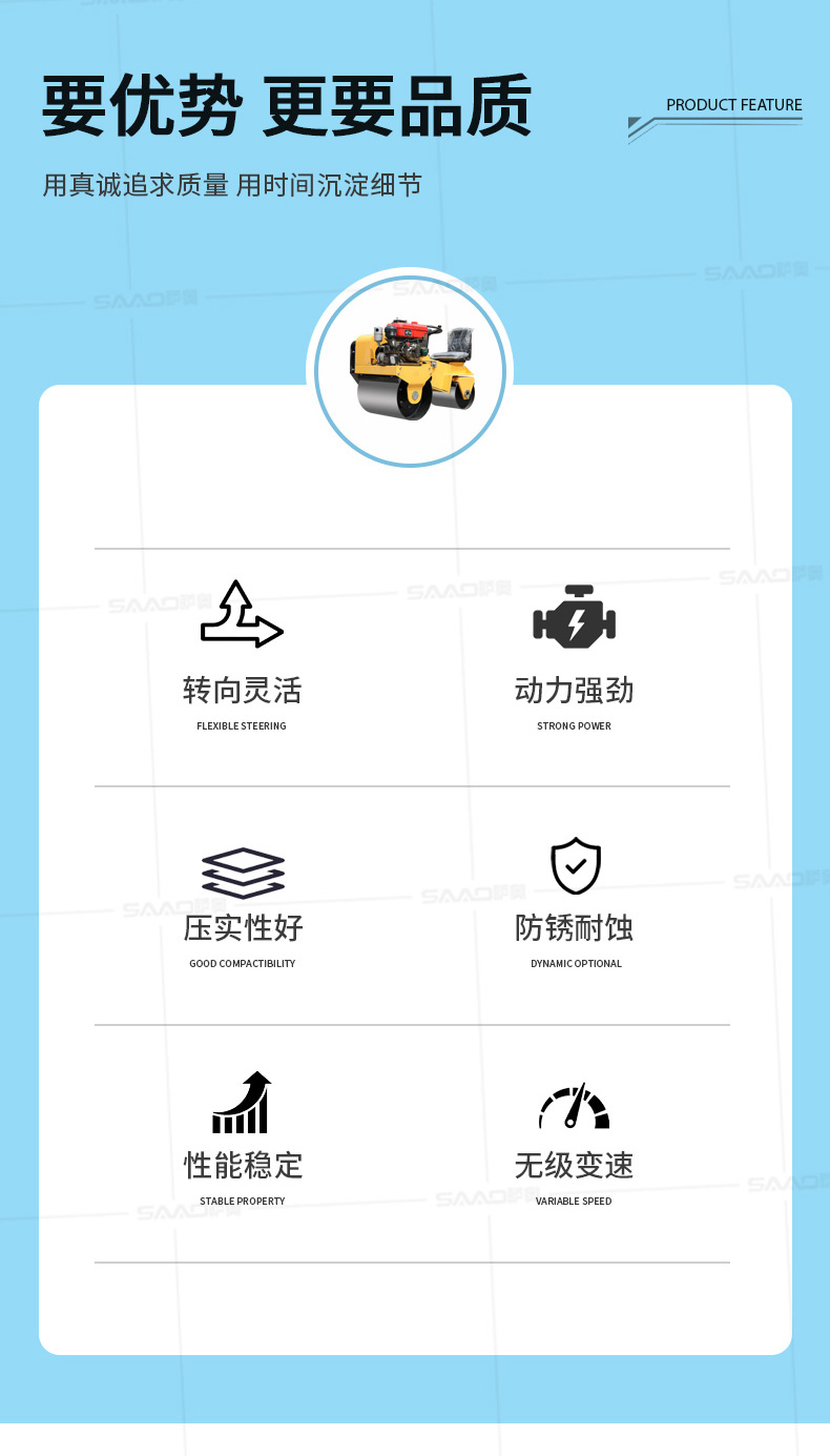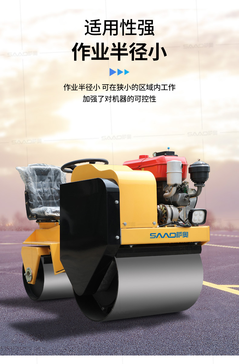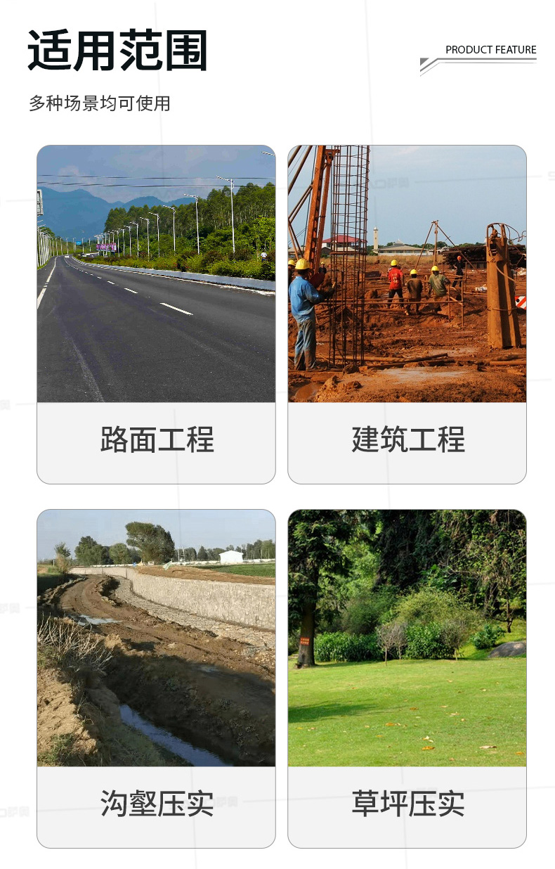 用于壓實瀝青表面,壓實礫石、沙土等工程基礎,碾壓草坪,作業(yè)半徑小,可在狹小的區(qū)域內工作;國內名優(yōu)柴油機,名牌品質保證,性能優(yōu)越,啟動容易;