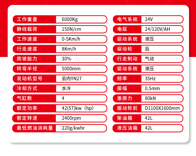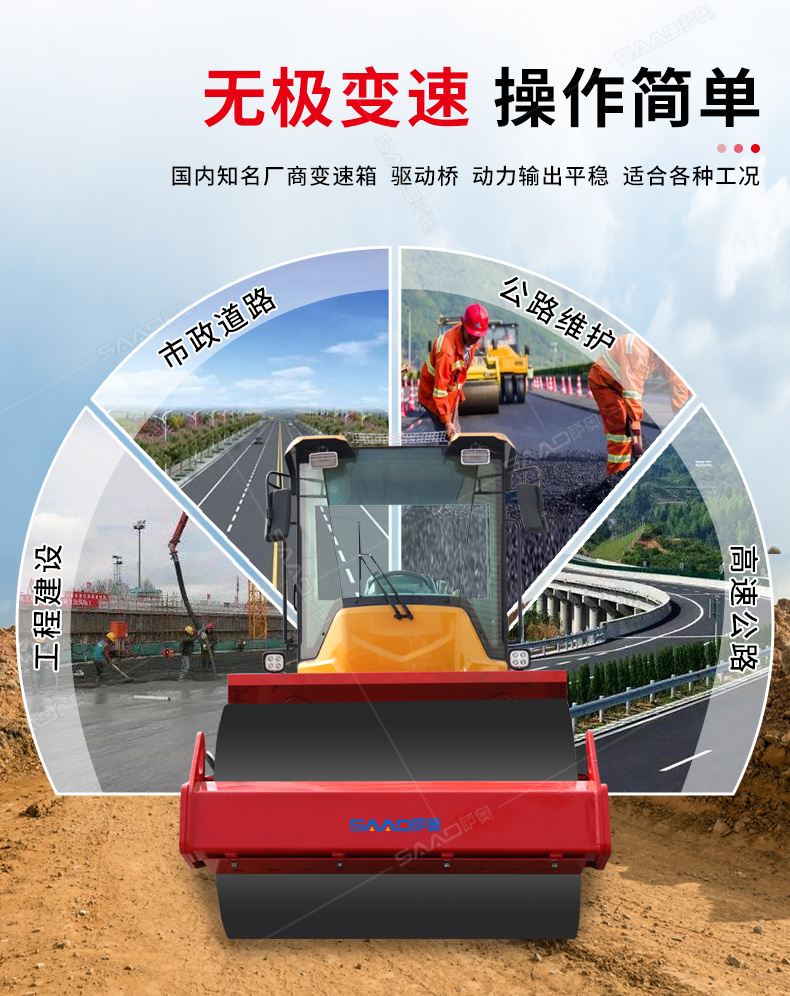 6噸壓路機主要應用市政道路、公路維護,具有強大的激震力及很高的靜線壓力,適宜于碾壓非粘性材料如礫石、礫土、碎石、砂石混合料和巖石填方以及粘土等。